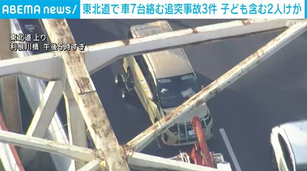 東北道で車7台絡む追突事故3件 子ども含む2人けが