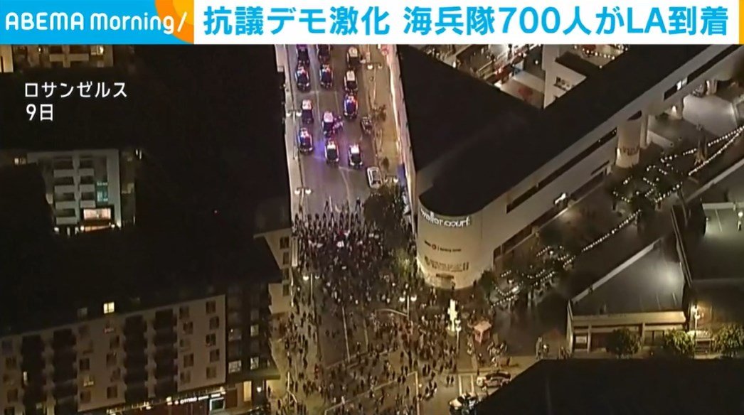 不法移民の取り締まりをめぐる抗議デモが続く中、アメリカメディアによりますと10日、約700人の海兵隊員がロサンゼルスの都市圏に到着しました。配備先や具体的な任務などは分かっていません。