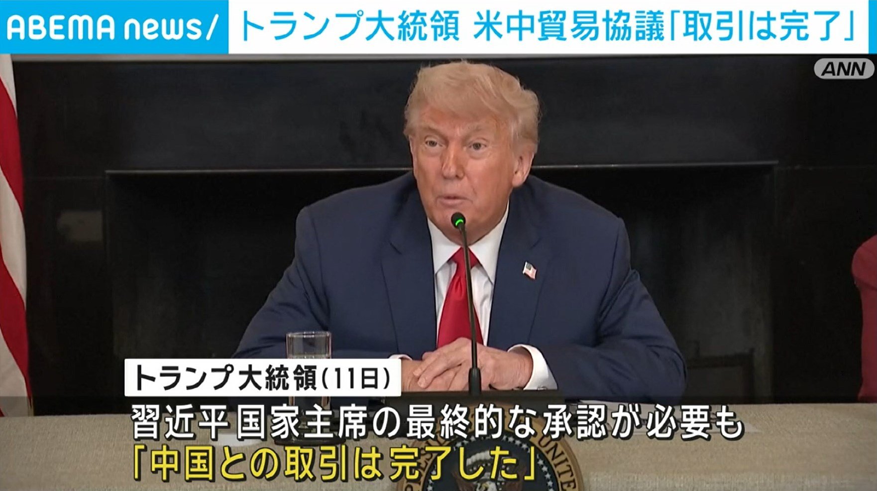 米中両政府が9日からロンドンで行った閣僚級協議について報告を受けたトランプ大統領は11日、習近平国家主席の最終的な承認が必要だとしつつも、「中国との取引は完了した」とSNSで主張しました。