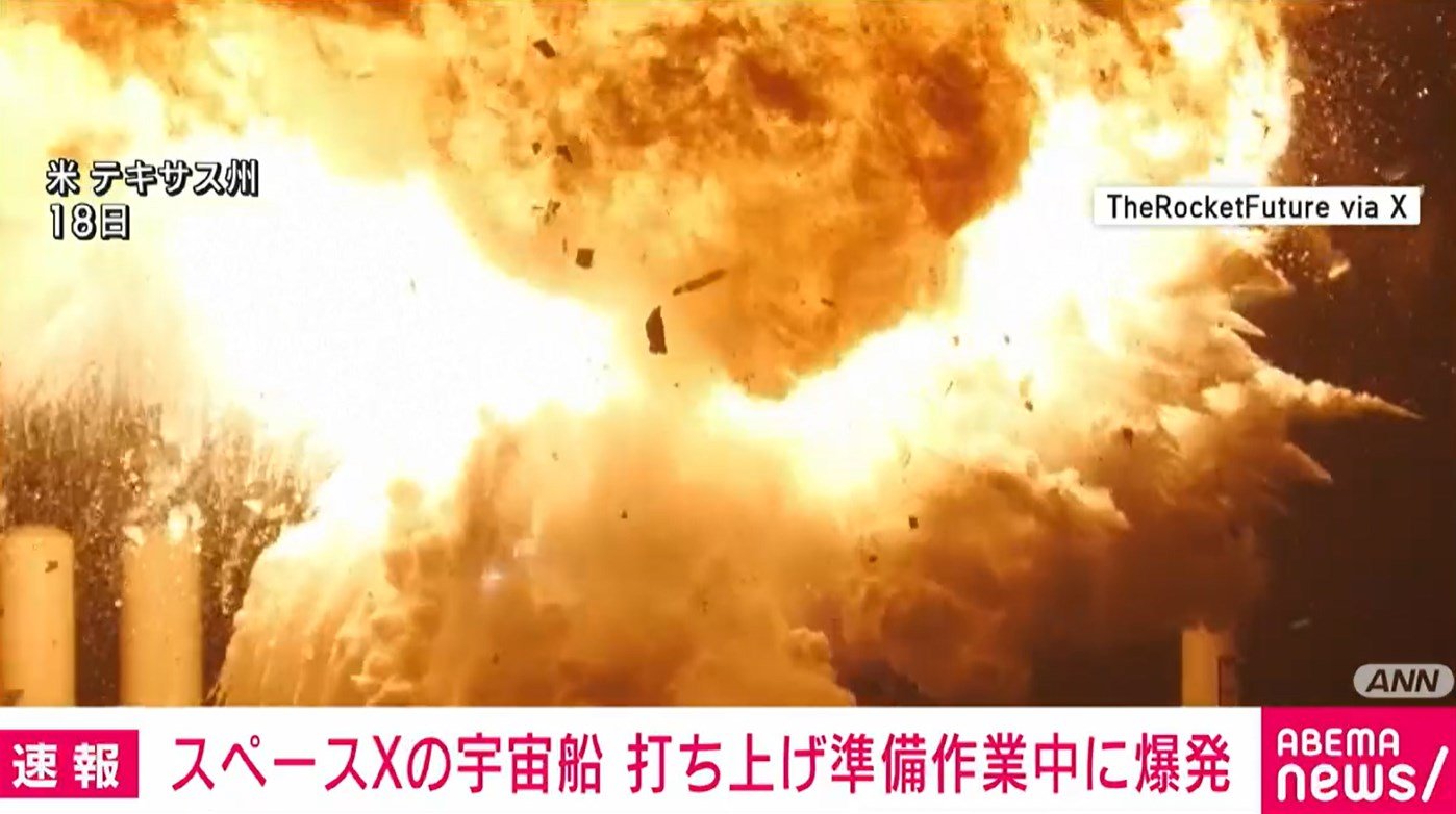 アメリカ・テキサス州のロケット発射場で18日、大型宇宙船「スターシップ」が爆発しました。10回目となる打ち上げ実験を前にした地上でのエンジンの燃焼試験中でした。従業員や周辺住民に、けが人は確認されていないということです。
