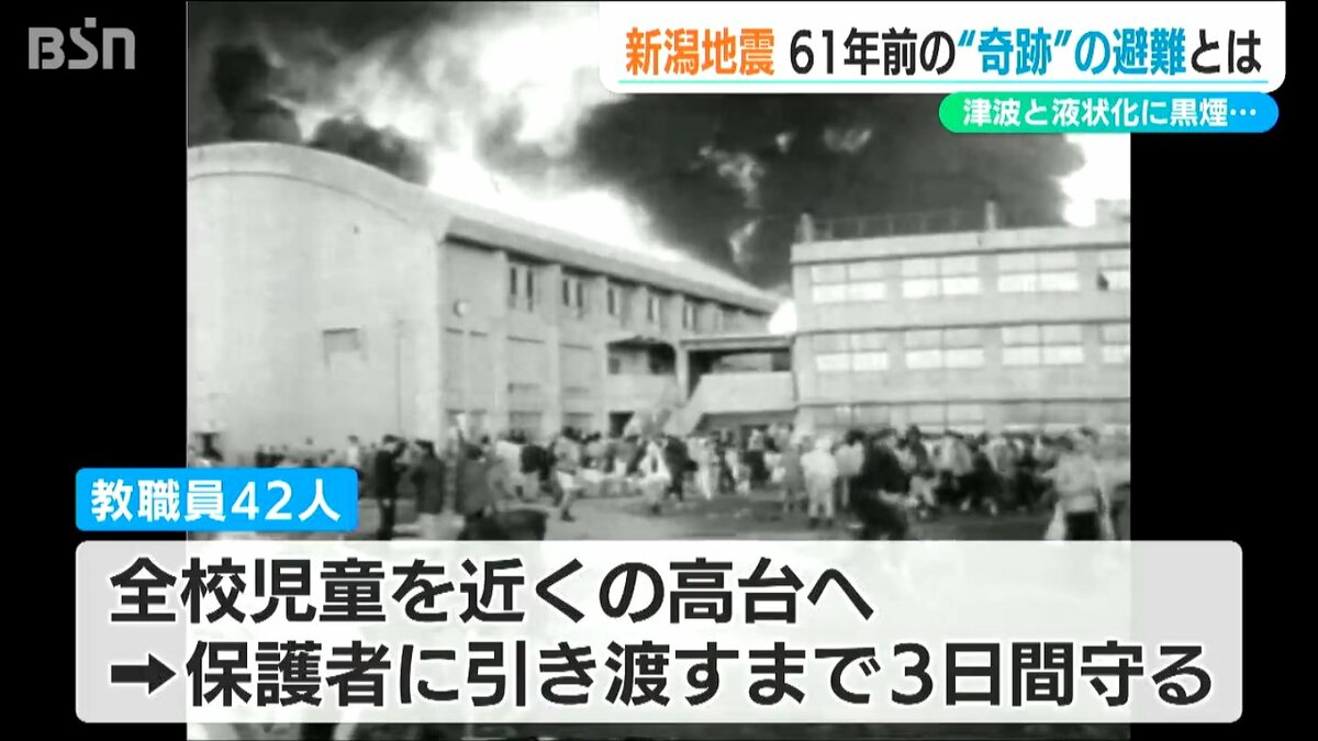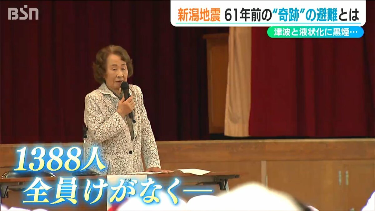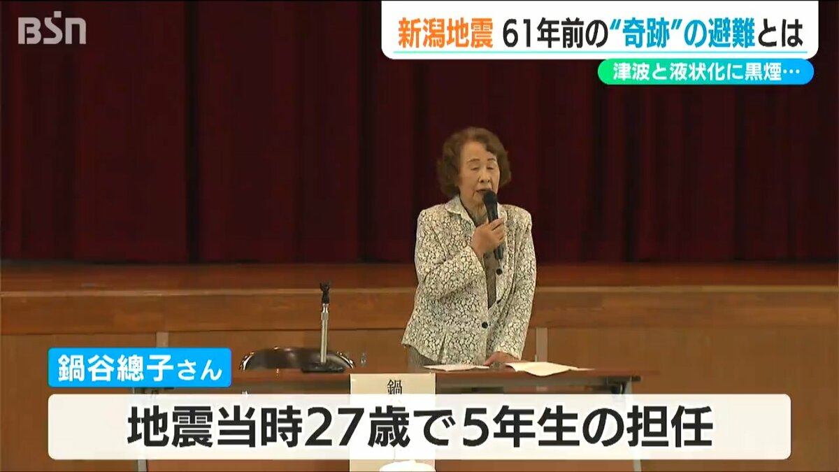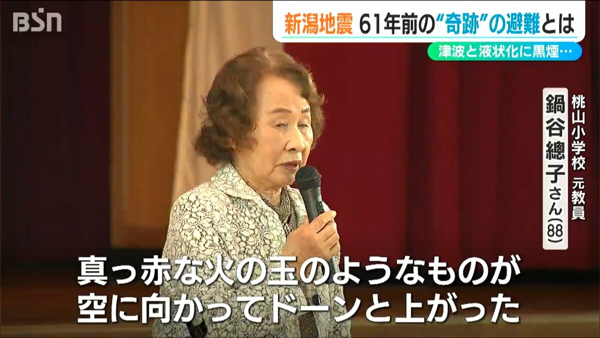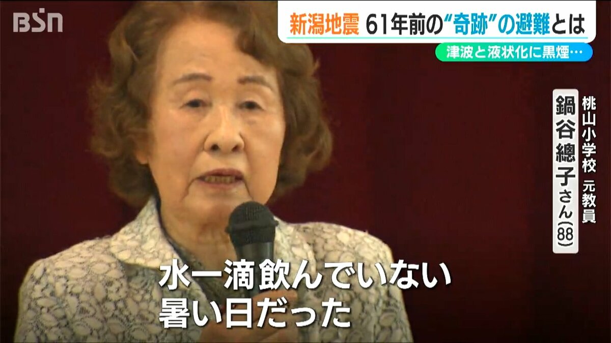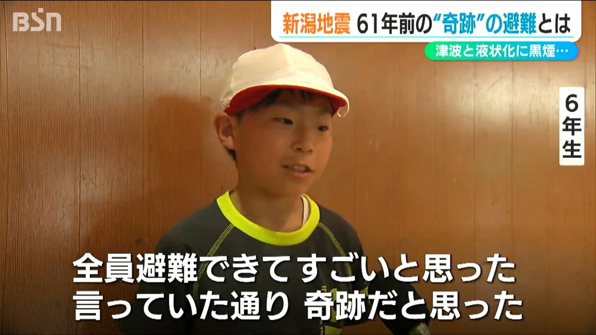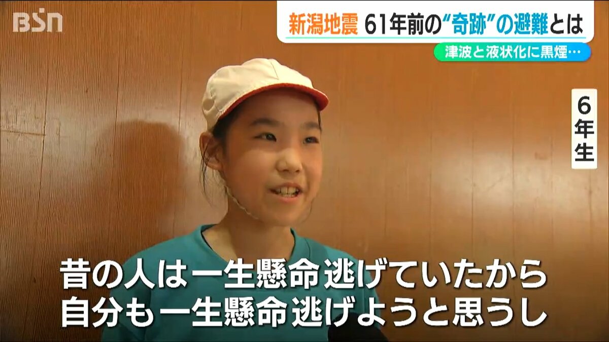 1964年6月16日、当時1000人を超える全校児童が1人もけがすることなく避難した新潟市立桃山小学校で、子どもたちが地震の教訓を学びました。