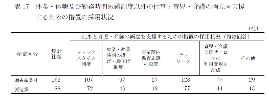 テレワークとフレックスタイム制が両立支援の主軸に