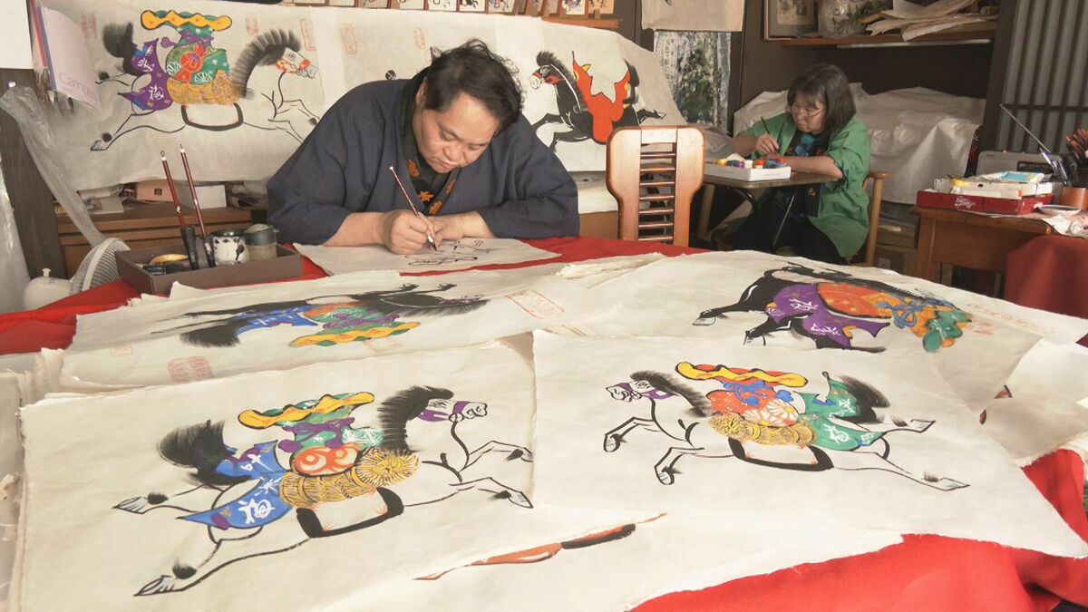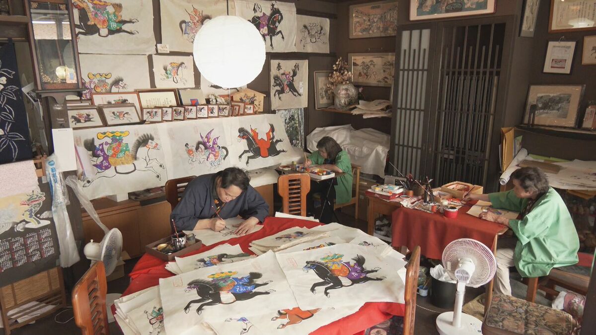 ことしは米の価格高騰が続いているためか米俵を背負った絵馬が人気だということです。例年、池本屋では大小合わせて約1000頭の紙絵馬を描きますが来年は「うま年」なのでそれ以上を目標に取り組むということです。