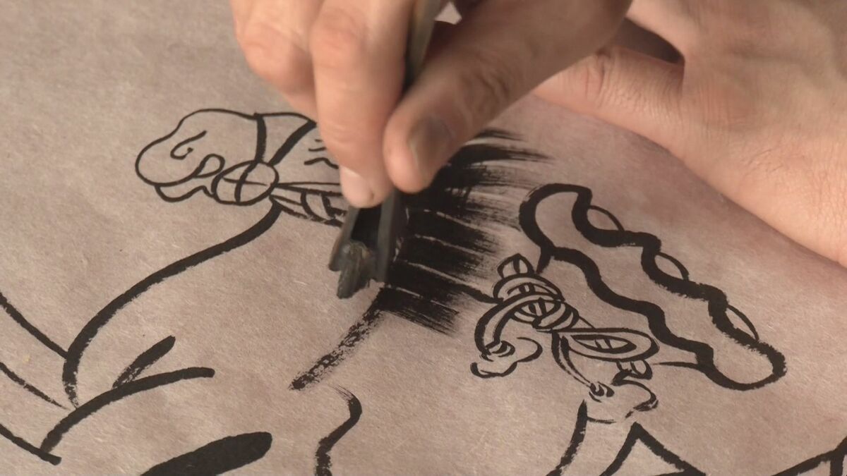 6代目の池本幸司さんが和紙にたてがみなどを手書きで一枚一枚描き、色付けをして完成させます。