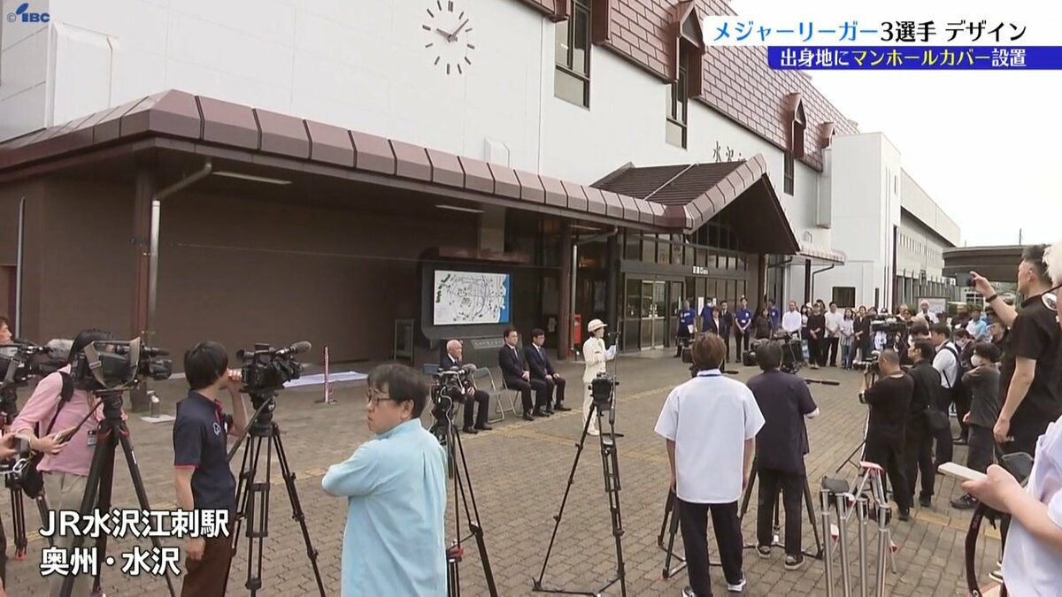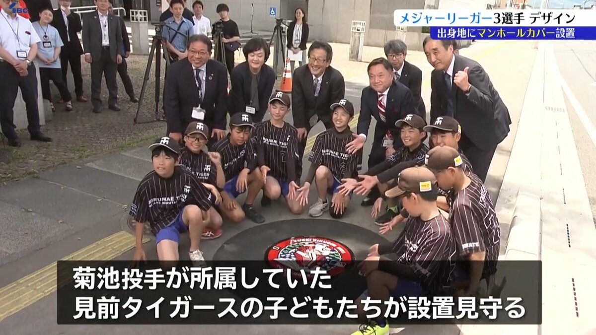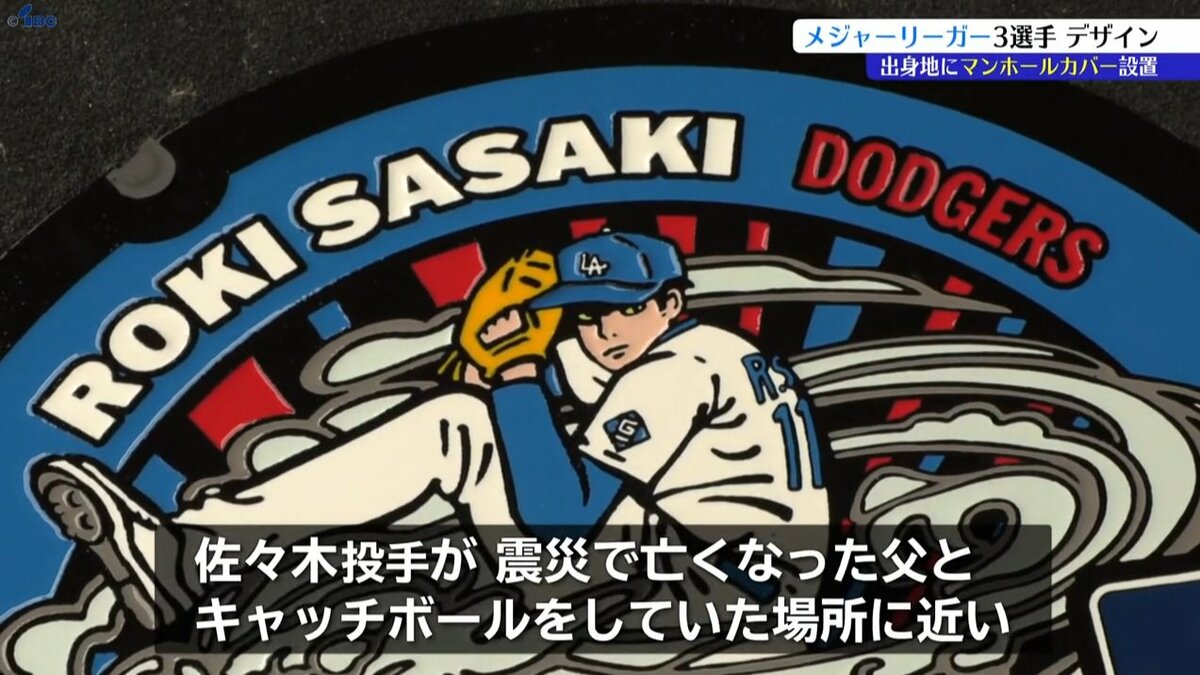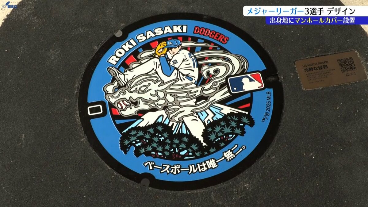 アメリカで活躍する岩手県出身の3人のメジャーリーガーをデザインしたマンホールのふたが、それぞれの出身地に設置されました。
