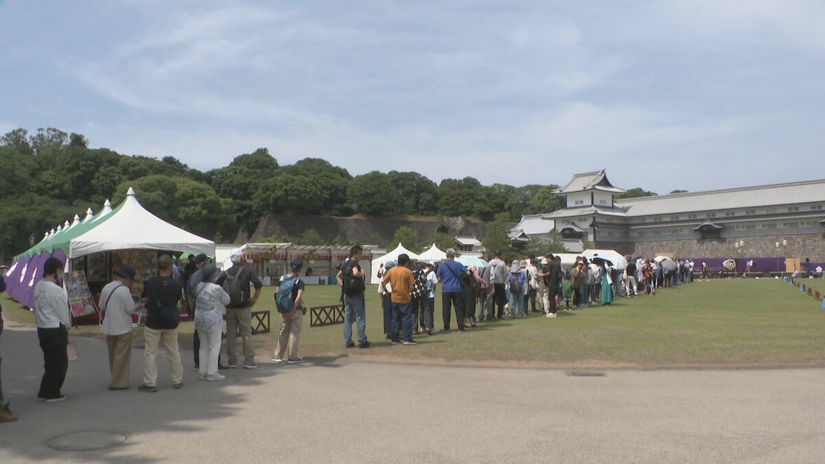 会場の金沢城公園三の丸広場には、和菓子作り体験のコーナーなど43のブースが設けられています。