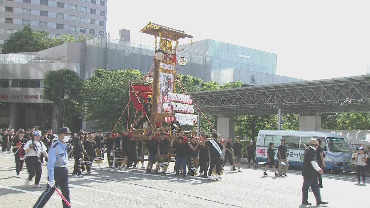7日の金沢市内は正午過ぎに28・6度と7月上旬並みの暑さとなった中、参加者たちは顔を真っ赤にさせながら笑顔でパレードを盛り上げていました。