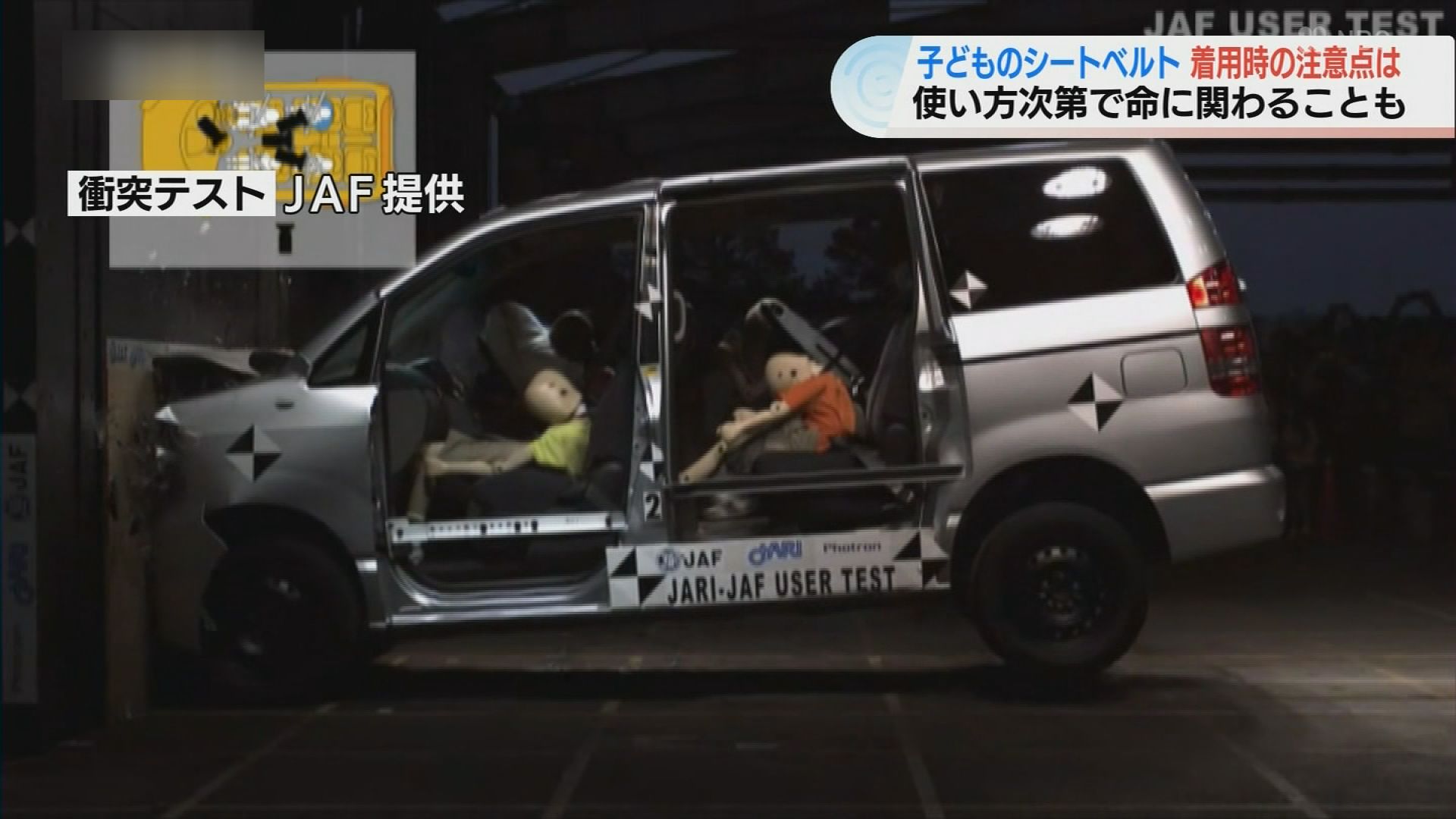 万一の事故のときに命を守るためのシートベルト。しかしJAF長崎支部によると、シートベルトの多くは《身長140センチ以上》を対象に設計されていて、140センチに満たない児童がそのまま着用した場合、衝突時にベルトが首や腹部に食い込むなど深刻なダメージを受ける恐れがあるといいます。