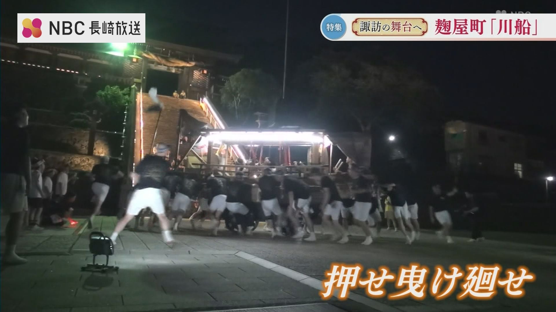 毎年10月7・8・9日の3日間行われる「長崎くんち」。コロナ禍で3年間の休止を挟み、10年ぶりの出演となることしの7か町。本番までの稽古の様子をシリーズで紹介します。「第五番」は麹屋町の「川船」です。週6日の稽古を重ね、「押せ曳け廻せ」を合言葉に荒々しい船廻しを目指します。