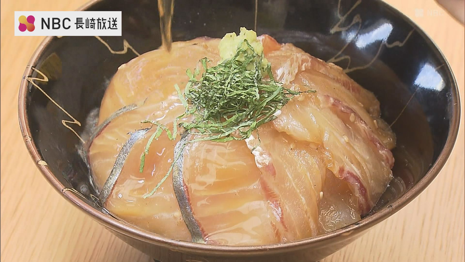 九州各地の地域の推し丼をかけて闘う駅長対抗ご当地丼総選挙に長崎駅からエントリーした丼が予選を突破し、18日、長崎市長へ本選出場を報告しました。長崎駅長の推し丼は長崎市の伝統柑橘類「ゆうこう」を混ぜた餌で育てられた高級魚シマアジと真鯛の漬け丼。出汁をかけても美味しい一品です。