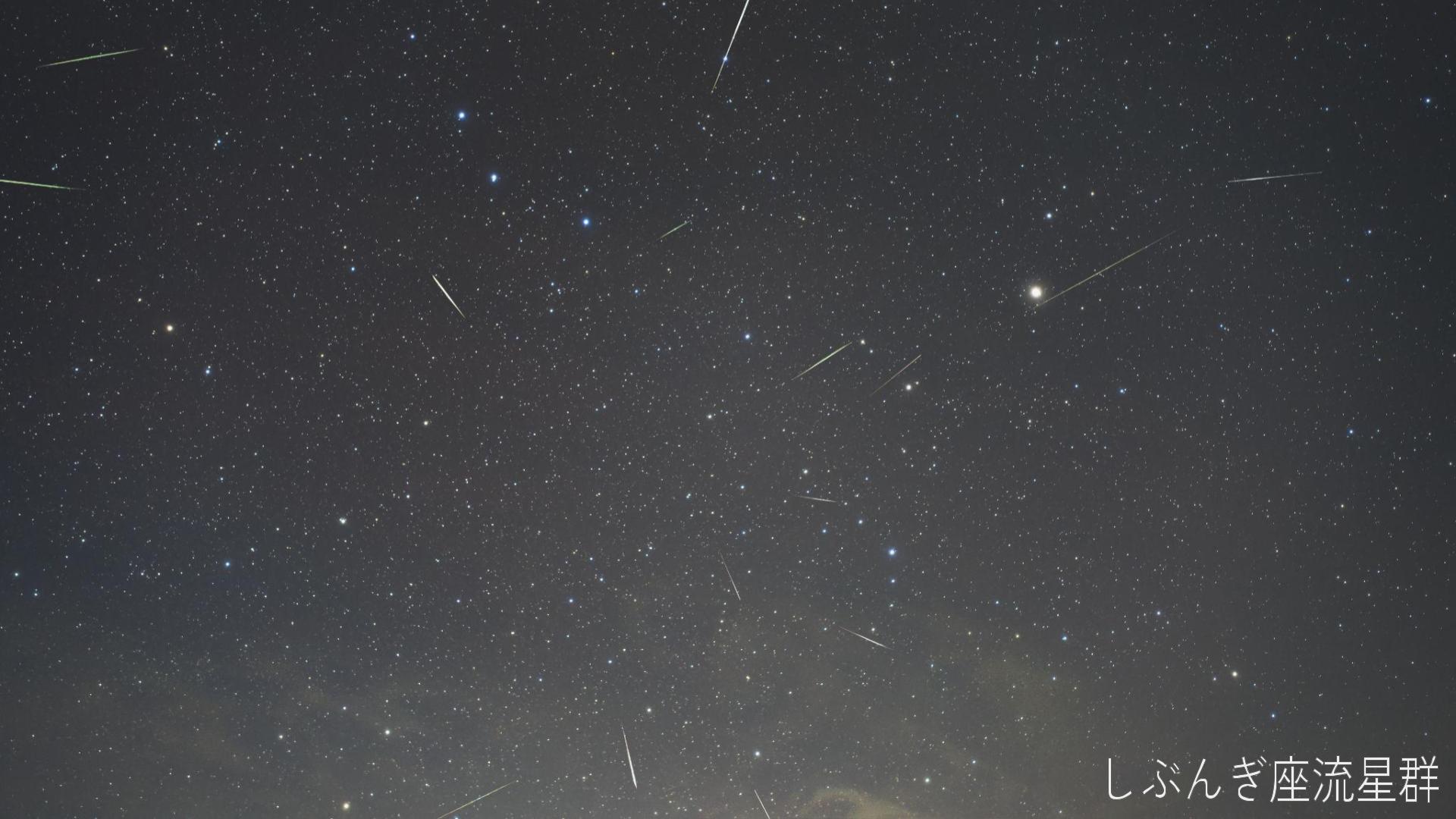 しぶんぎとは「四分儀」のことで八世紀末ごろまで用いられた天体観測器械です。今は存在しない「壁面四分儀(へきめんしぶんぎ)座」という星座に由来しており、「うしかい座」と「りゅう座」の境界付近を放射点に現れます。放射点とは、あたかもその場所から花火が打ち上がるように、流星が放射状に広がって見える空の中心点のことです。