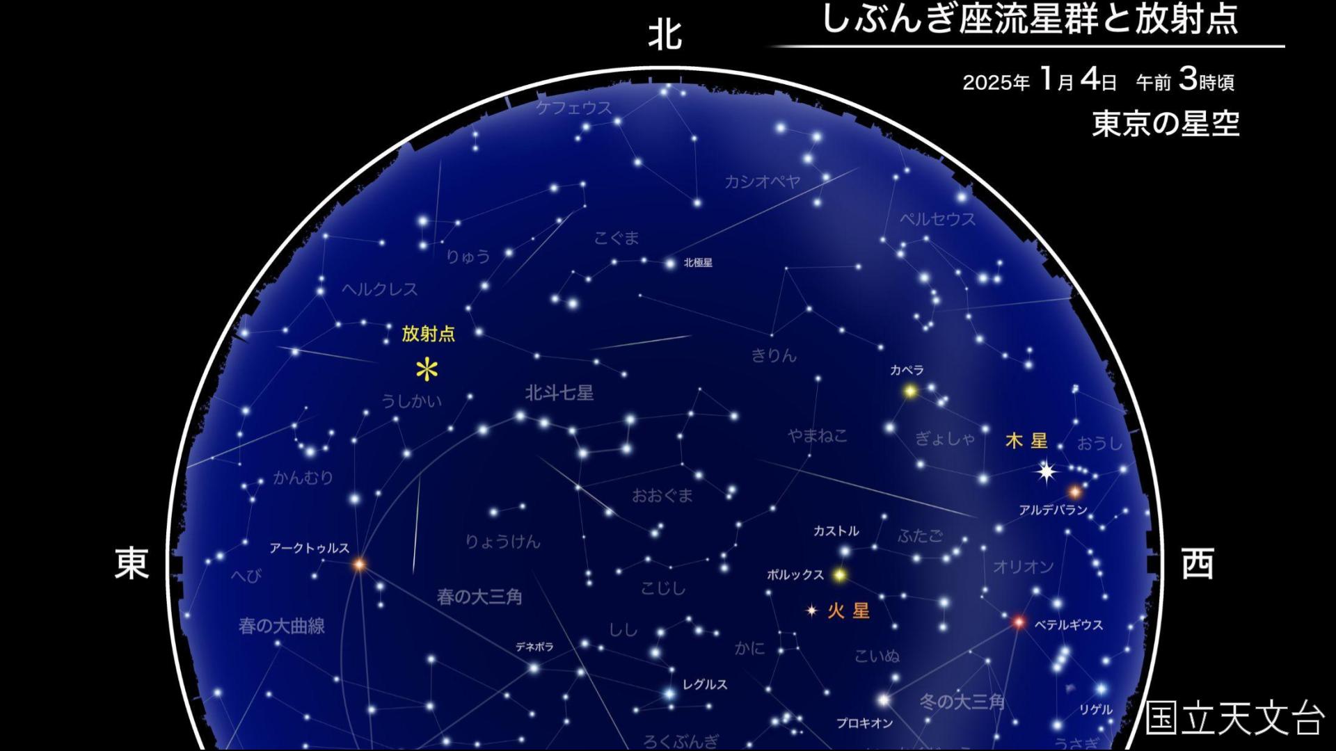 三大流星群のひとつ「しぶんぎ座流星群」が年明け1月4日未明に見ごろを迎えます。2025年最初の天体ショー。月明かりの影響もなく、好条件での観測が期待できます。