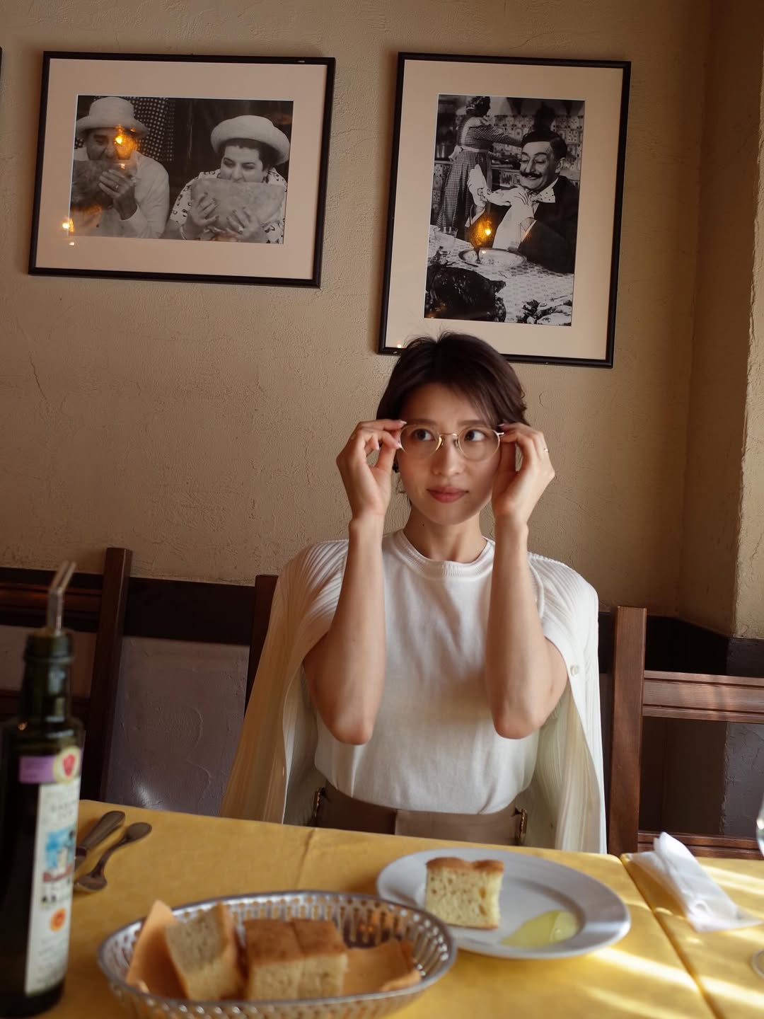 「アウディーレスタッフと美味しいランチ探訪。ピザ1枚ぺろり」とつづり、レストランでの食事の様子を披露。髪をまとめた白いブラウス姿に銀縁眼鏡を掛けて、清楚でさわやかな装いを披露している。