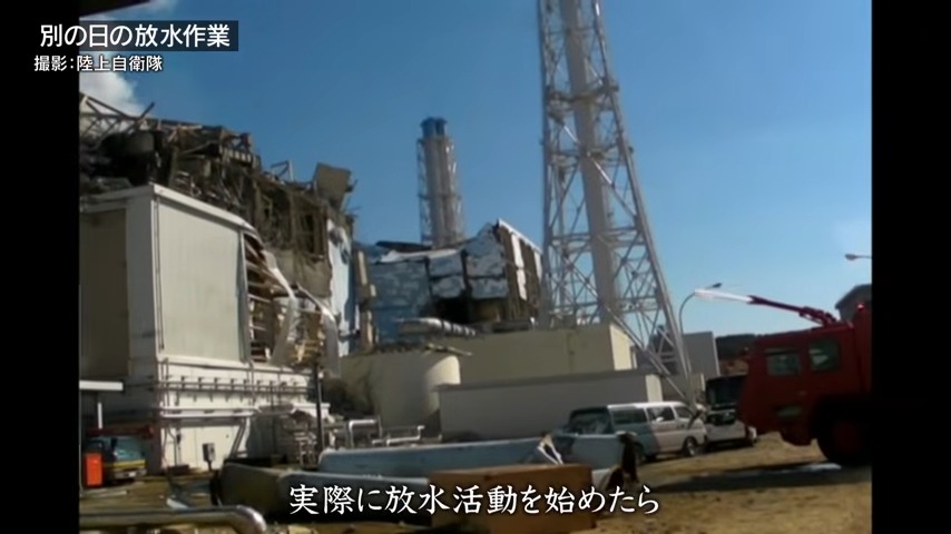 特殊消防車を指揮し、建屋に空いた穴から燃料プールに放水せよとの命令。自衛隊が4号機に地上から放水を試みるのは初めてのことだった。翌日の作業に備え準備を行うと、時計の針は24時をすぎ、3月20日になっていた。