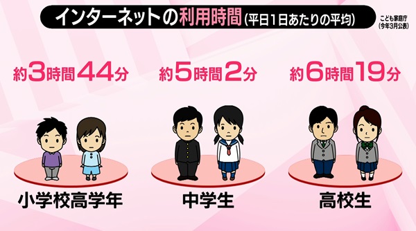 「中学生では約5時間2分、高校生では約6時間19分ということです。年齢が上がるにつれて時間も延びていくということなんですね」