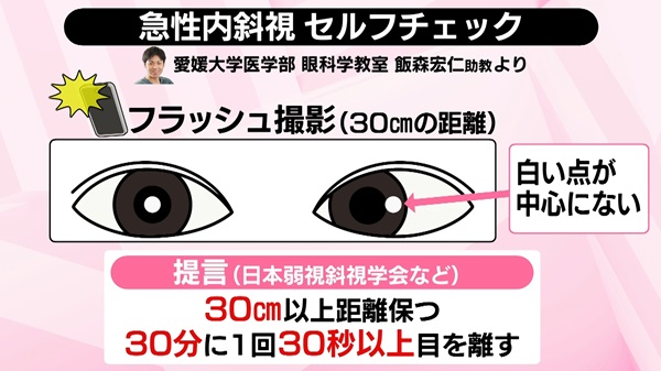 「では、どうやって自分や子どもの急性内斜視に気づけるのか。愛媛大学医学部で斜視が専門の飯森宏仁助教(眼科学教室)に聞きました」