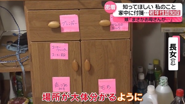 神奈川県内で家族と暮らす、守下洋子さん(仮名・56)。家の中を見せてもらうと、ところどころにピンク色の付箋が貼ってありました。