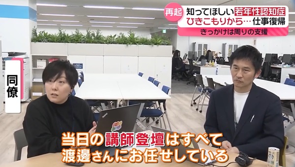 一緒に働く同僚は「研修終わったあとにアンケートを送るとか回収するとか、そういったところは私が担当していて、当日の講師登壇はすべて渡邊さんにお任せしている」と言います。
