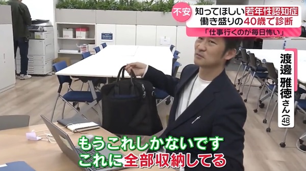 障害者雇用の支援などを行う会社で働く渡邊雅徳さん(48)に取材しました。愛用のカバンを見せてもらいました。渡邊さんは「もうこれしかないです。これに全部収納しています」と言います。