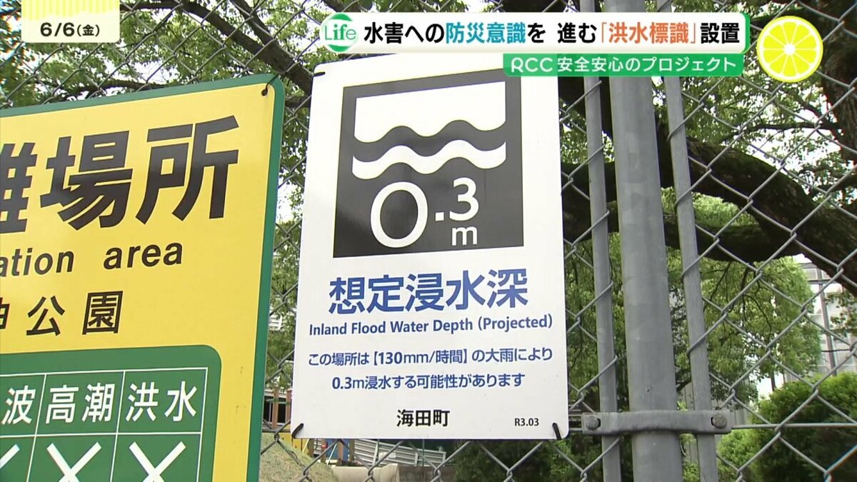 雨が多くなるこの時期に警戒する災害の1つが「川の氾濫」です。広島県は6日、川が氾濫したときに浸水する高さの目安となる「洪水標識」を熊野東防災交流センター(広島県熊野町)に設置しました。住民の水害に対する危機意識向上が設置の狙いで、県は今後、洪水標識の設置を拡大させていく方針です。