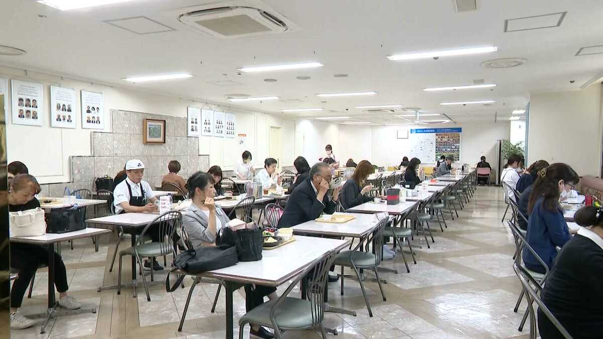 大丸福岡天神店の従業員食堂を覗いてみると、昼前からほぼ満席の状態。
