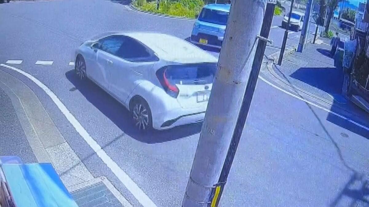 こちらは福岡市東区で起きた事故の直前の映像。画面右下から出てきたのが男が運転する乗用車です。