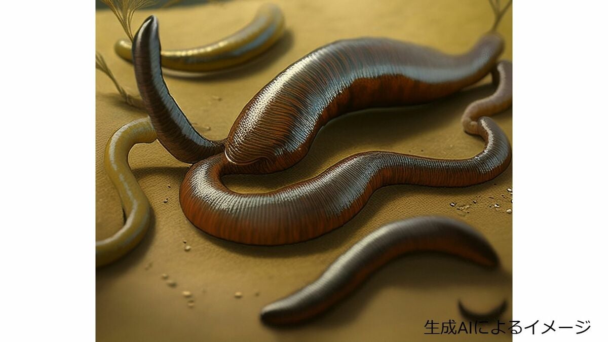 「実際は足もとが一番の要注意ポイントですね。そんな足もとから服や靴に侵入し、そっと皮膚が露出したところに吸いついて吸血します」(【画像②】ヒルのイメージ:閲覧注意)