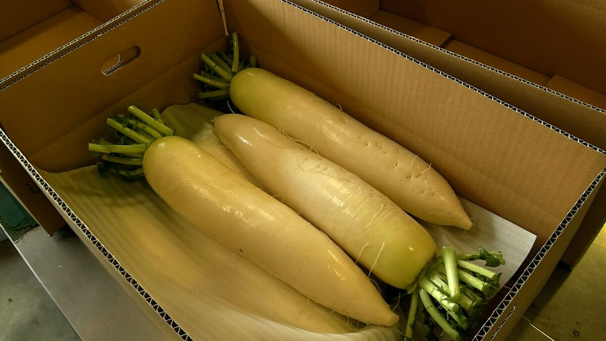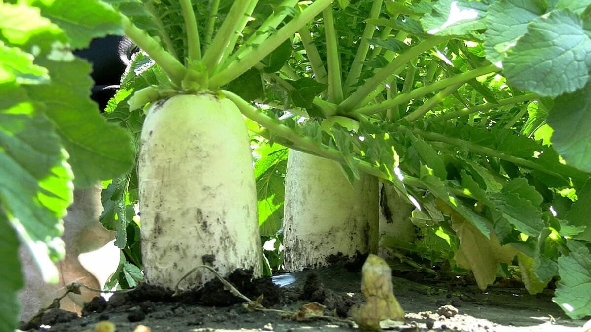 「きょう(5日)とれた大根は、あすにはスーパーに並んでいると思いますので、是非お求めいただいて、新鮮なままのやつを食べてみてください。おいしいですよ」