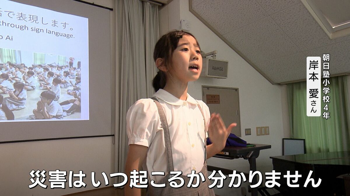 4年生の岸本愛さんは、災害時、障害がある人の逃げ遅れなどを防ぐため、特別な支援が必要なことを周りが把握できるしくみづくりが必要だと訴えました。発表資料の英語訳や発表について助言してきたのは佐久間賢志教諭。児童による発表で伝えたいことは…