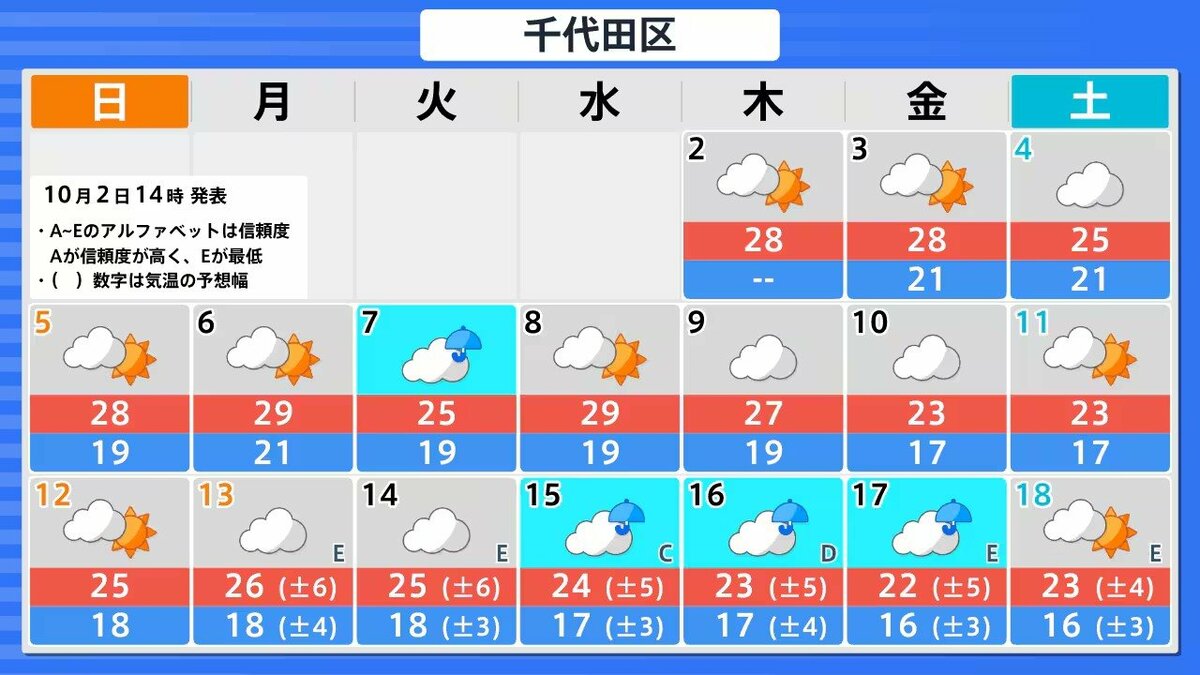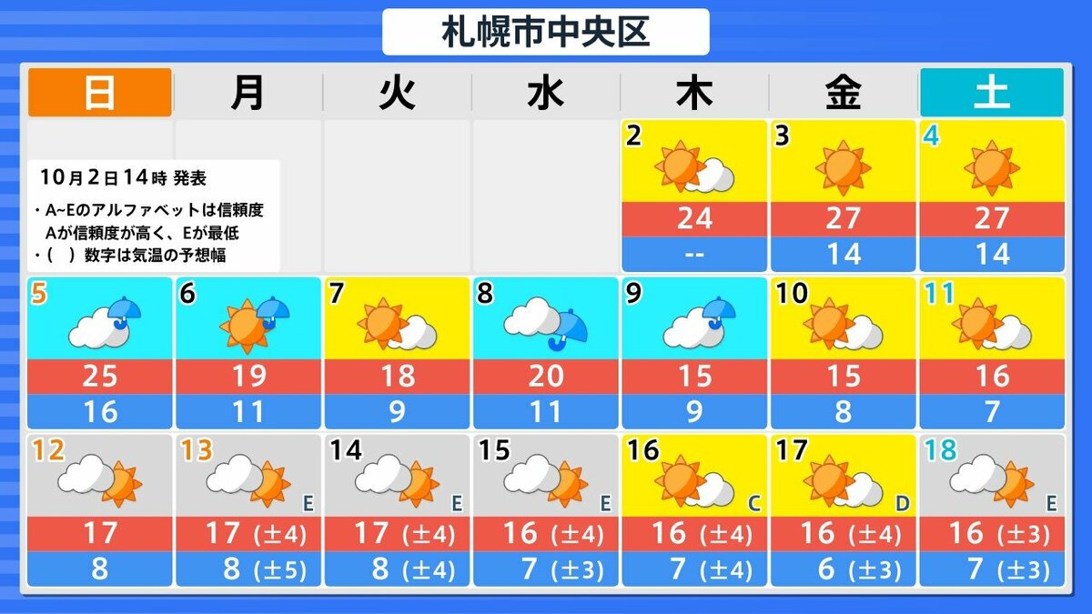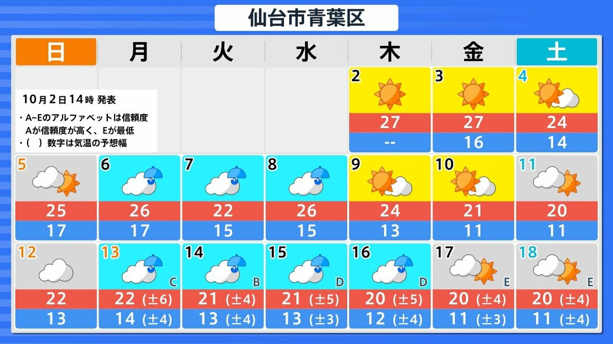 今後16日間の天気シミレーション 札幌・仙台・東京・名古屋・大阪・広島・福岡・那覇の天気・降水量・気温の予測は以下の通りになっています。