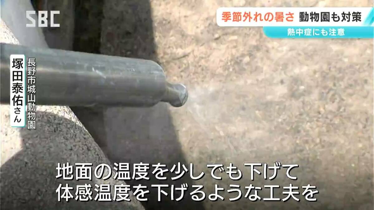 長野市城山動物園 塚田泰佑さん:「ニホンザルのサル山ではミストをまいて、地面の温度を少しでも下げて体感温度を下げるような工夫を、30度を超えるあたりからするようにしています。毎年飼育員も朝ヒヤヒヤしながらサルの観察をするんですけど、氷とか水とかそういった工夫を行いながら夏を乗り切ります」