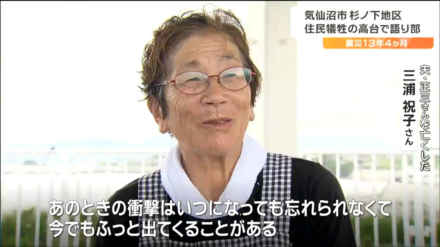 11日で東日本大震災の発生から13年4か月です。93人が津波で亡くなった宮城県気仙沼市の杉ノ下地区では遺族やボランティアによる語り部活動が行われました。