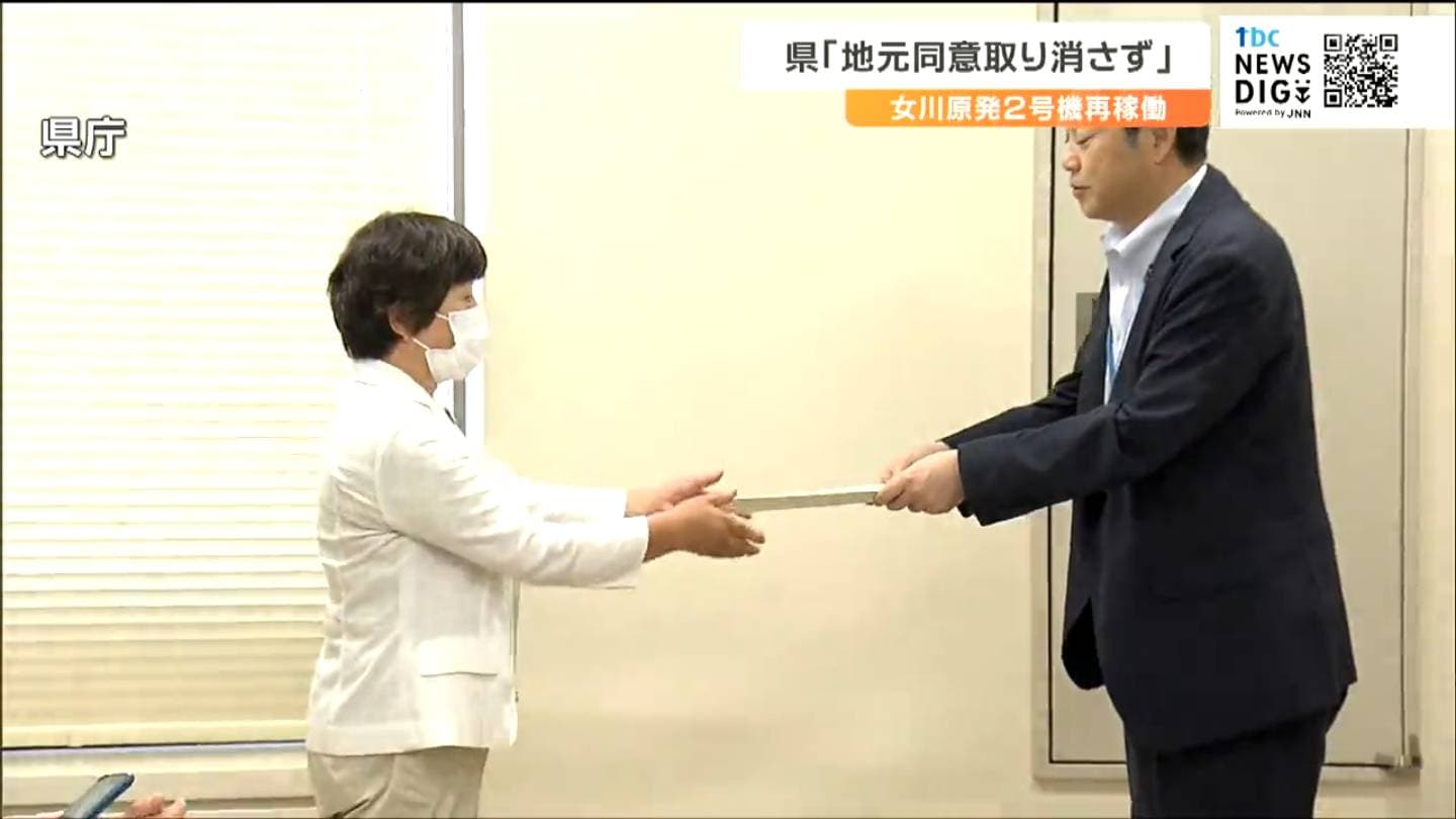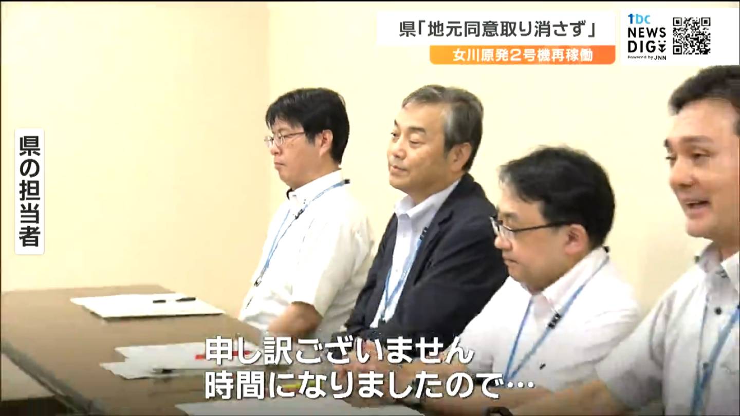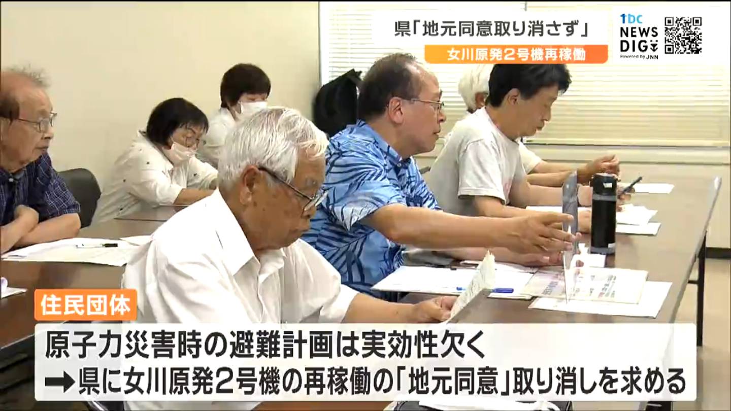 東北電力・女川原子力発電所2号機の再稼働に反対する住民団体が宮城県に求めていた地元同意の取り消しについて、県は同意を取り消さないと回答しました。住民団体との話し合いは紛糾しました。