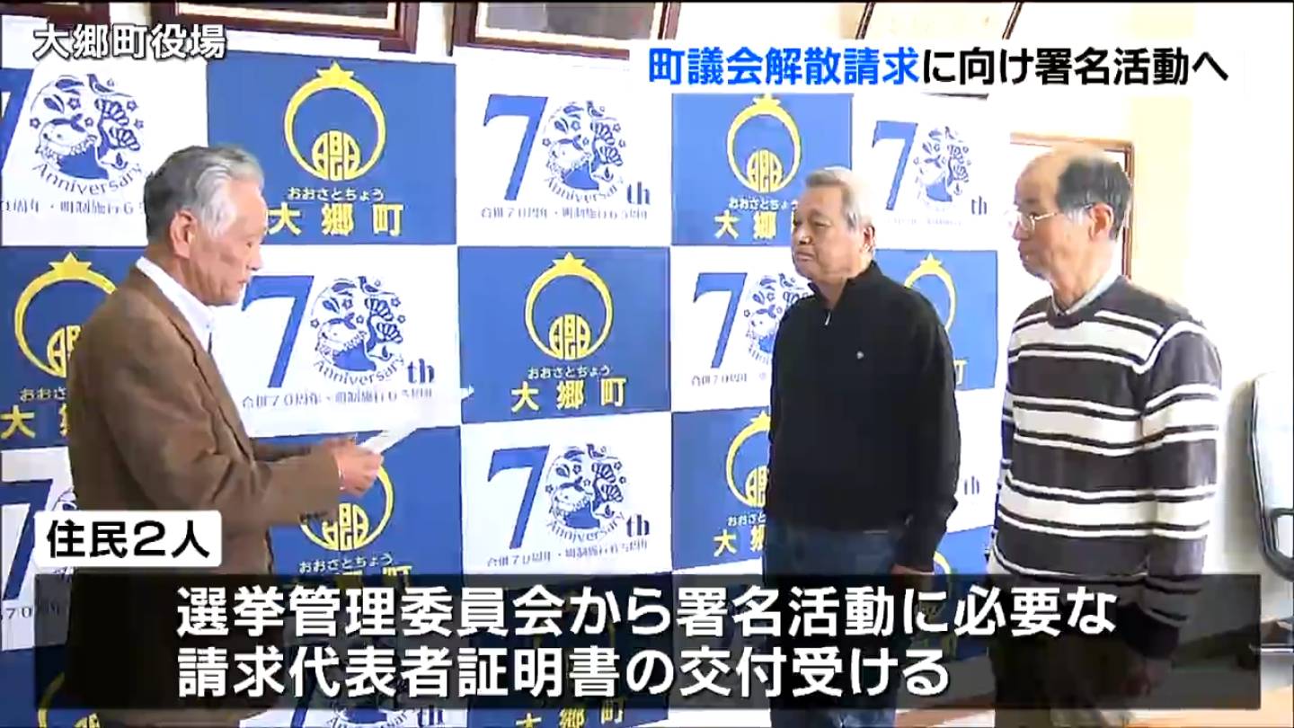 証明書の交付を受け、構想に賛成の町民らは町議会の解散請求に向けた署名活動を始めました。