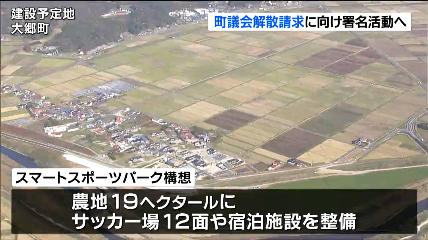 宮城県大郷町の農地にサッカー場などを整備する「スマートスポーツパーク構想」について、構想に賛成の立場の町民らが町議会の解散請求に向け、24日から署名活動を始めました。