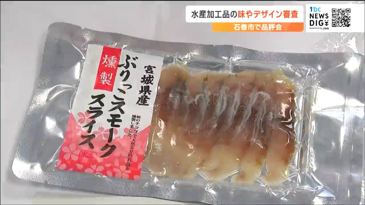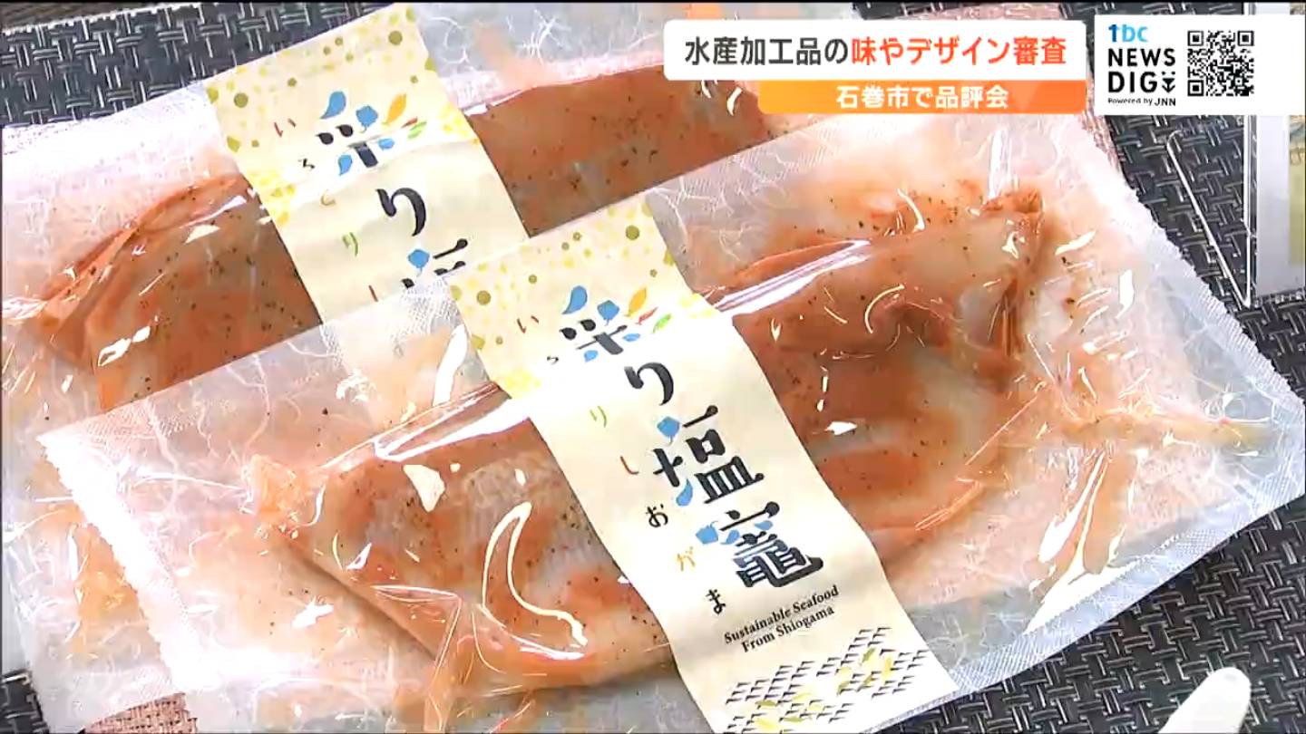 石巻市で開かれた水産加工品の品評会には、県内49社と水産高校1校から114点が出品され、ホテルの料理長ら14人の審査員が、味や製造技術などを比べていきました。