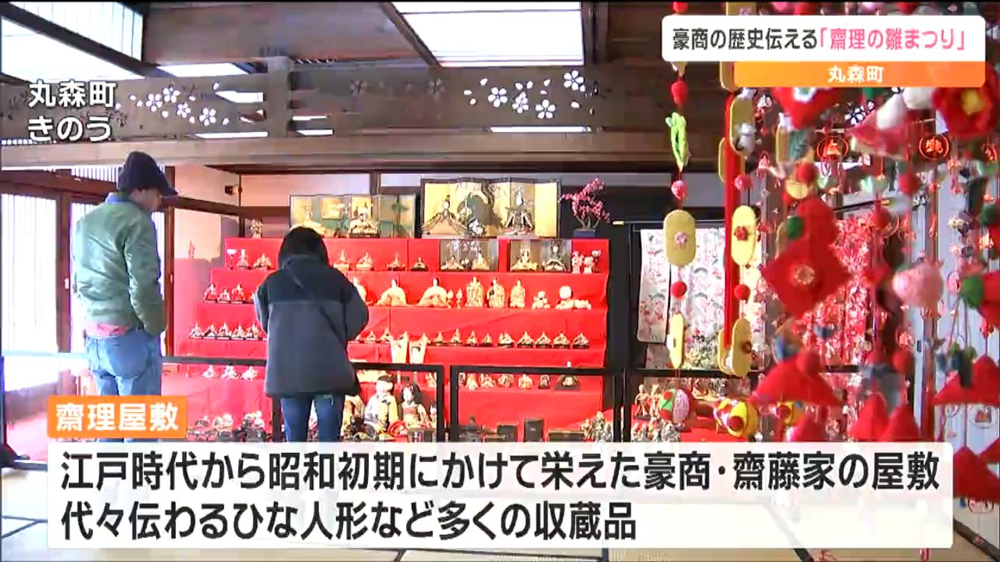 桃の節句を前に宮城県丸森町にある、かつての豪商の屋敷「齋理屋敷」に代々伝わるひな人形が展示されています。