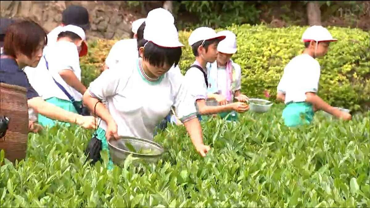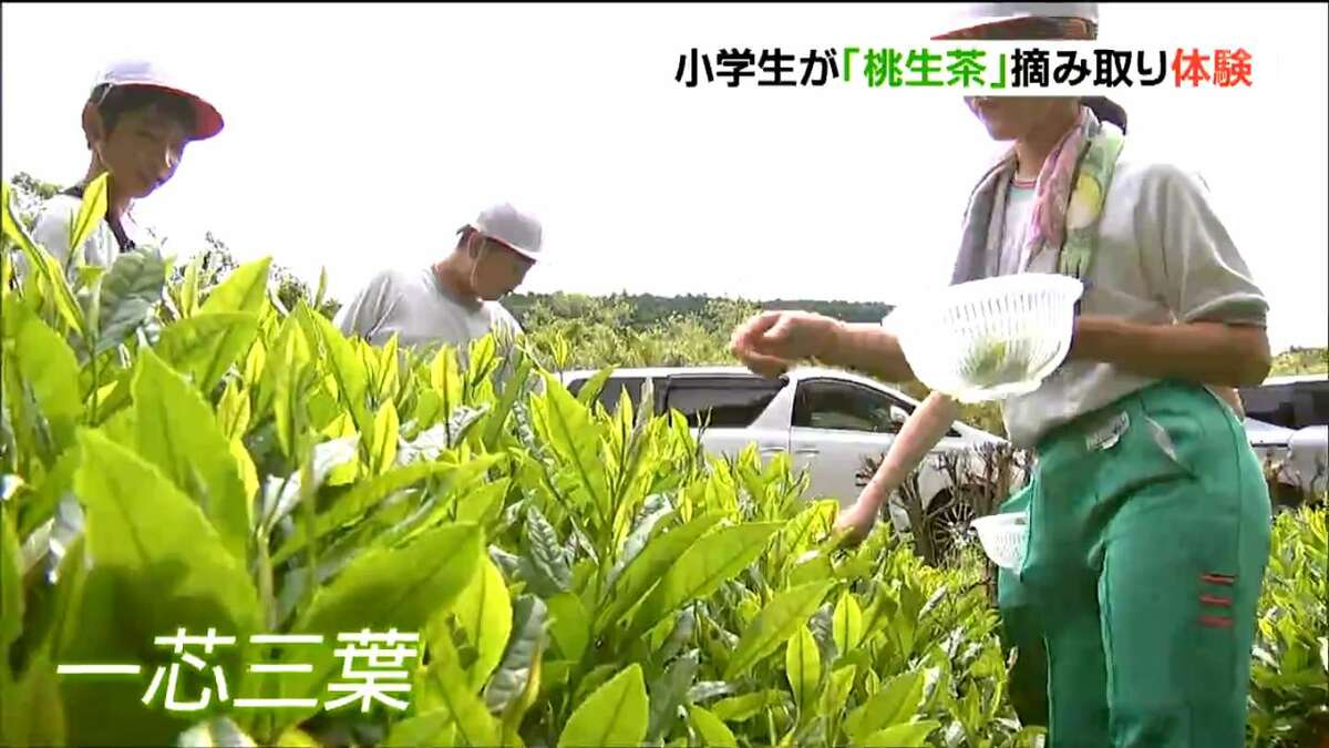 宮城県石巻市桃生(ものう)地区で生産されている「桃生茶(ものうちゃ)」に理解を深めてもらおうと、地元の小学生たちが茶摘みを体験しました。