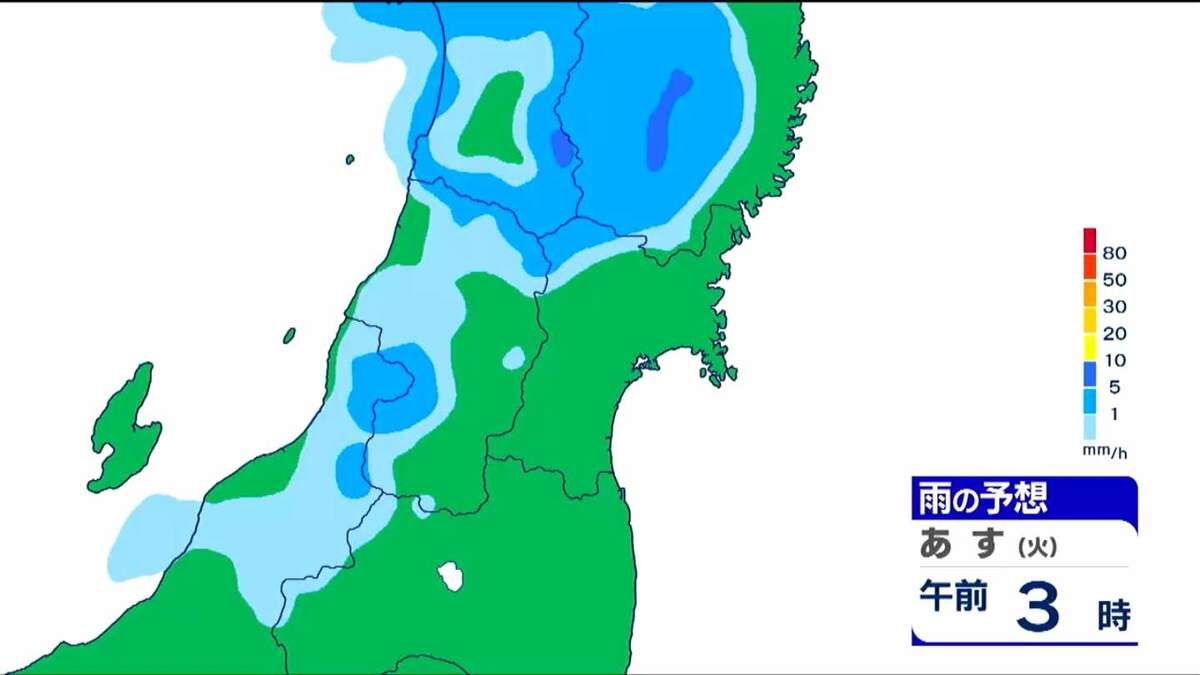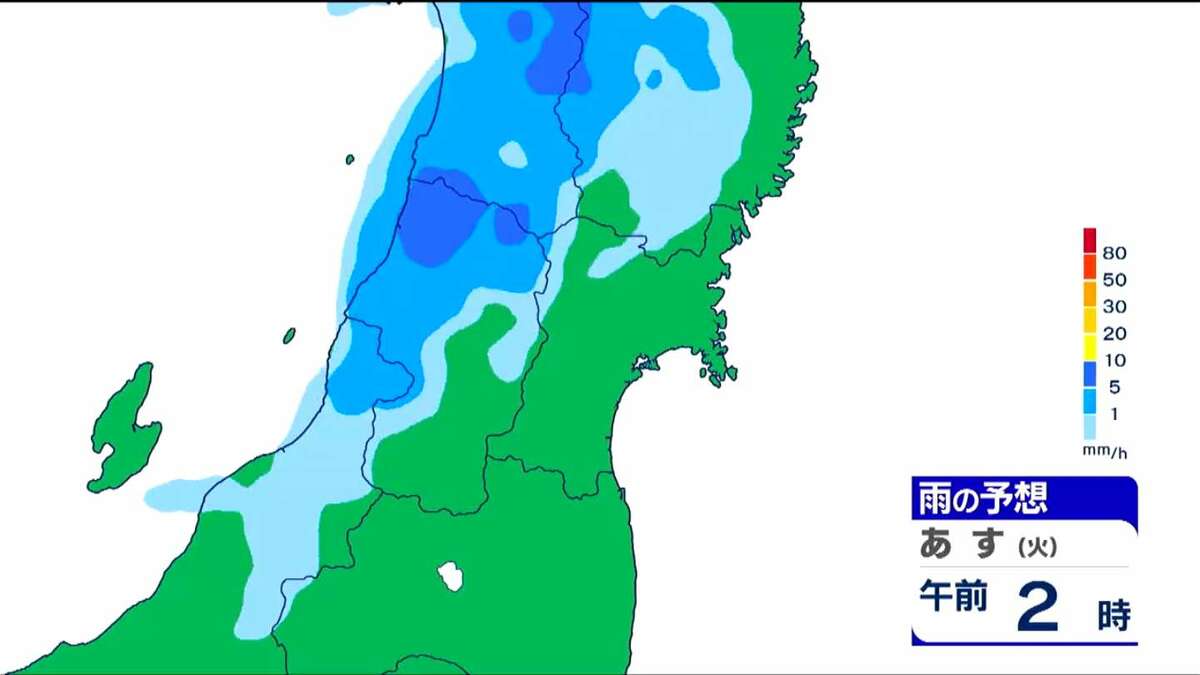 16日夜の天気は宮城県北部を中心に雨が降り、一時的に小康状態となった後、17日未明には再び降り出す地域があります。