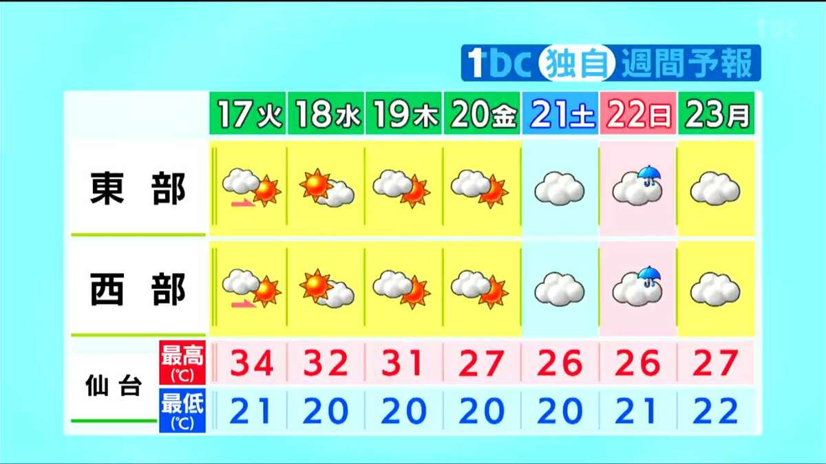 【16日午後4時時点】連日の真夏日に備えを!17日は今年一番の暑さに 宮城の天気 tbc気象台
