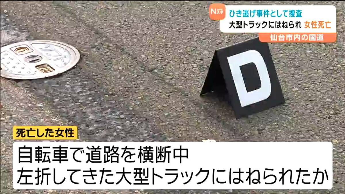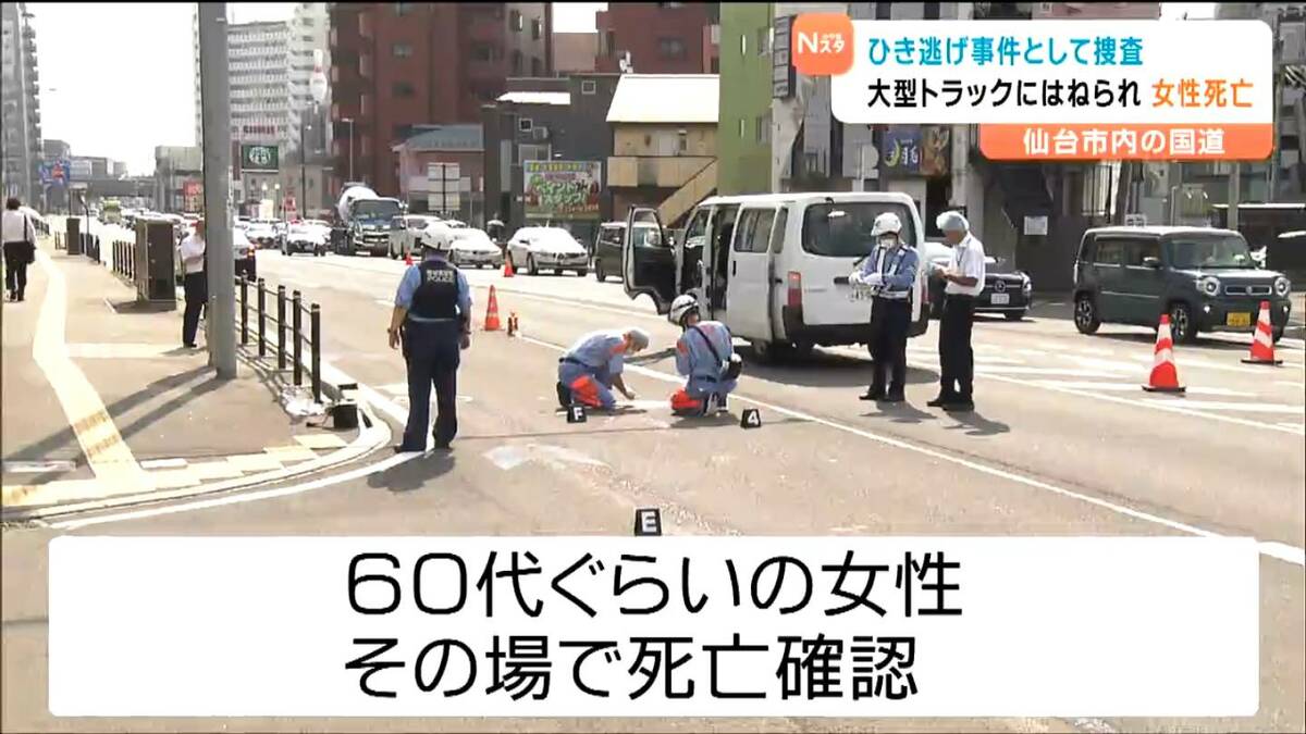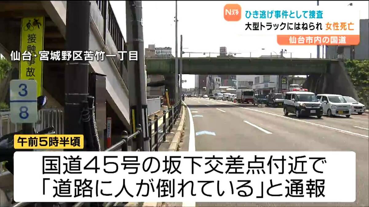 20日朝早く、仙台市宮城野区の国道で女性が、大型トラックにはねられ死亡しました。警察は、過失運転致死とひき逃げの疑いで、トラックの運転手の男を逮捕しました。