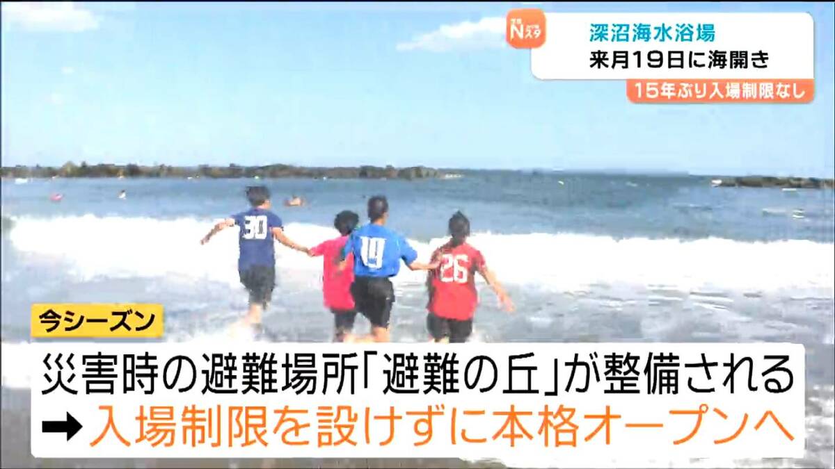 仙台市内で唯一の海水浴場、深沼海水浴場が、7月19日にオープンします。入場制限がない形でのオープンは、震災の発生以降初めてで15年ぶりです。