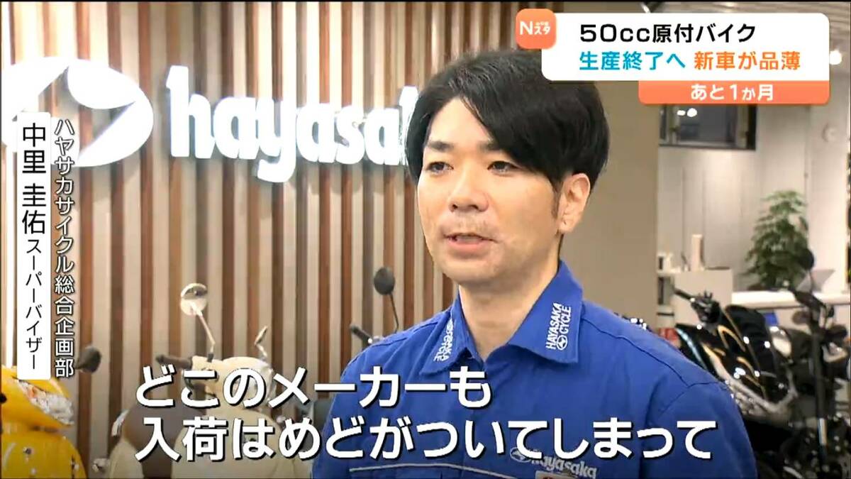 原付バイクの生産終了は1か月後ですが、すでに新車の入荷は難しくなっているといいます。