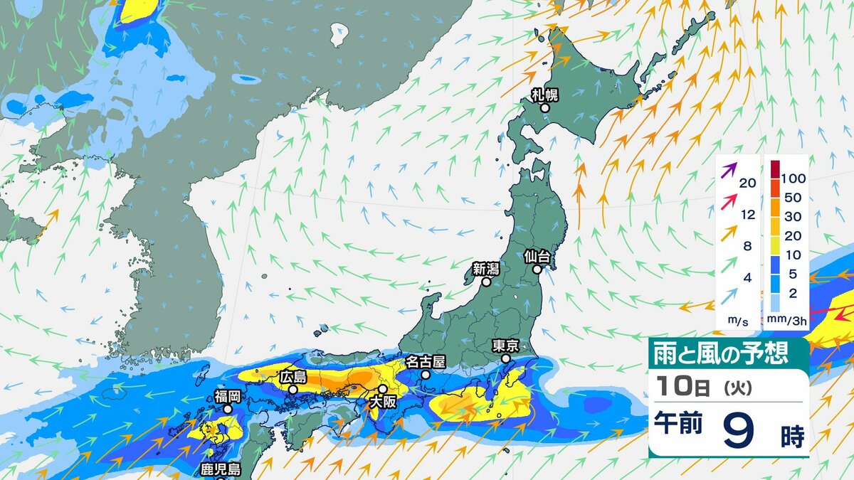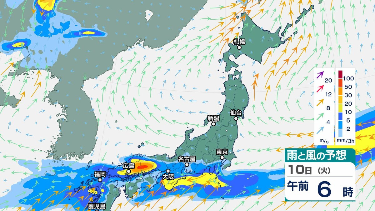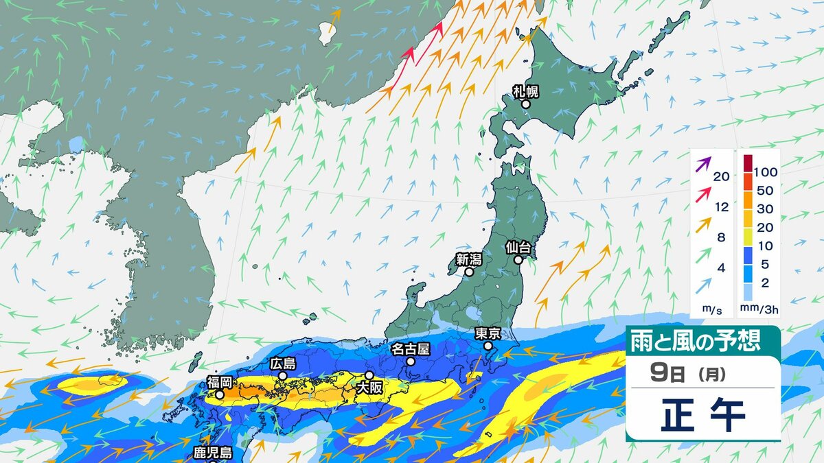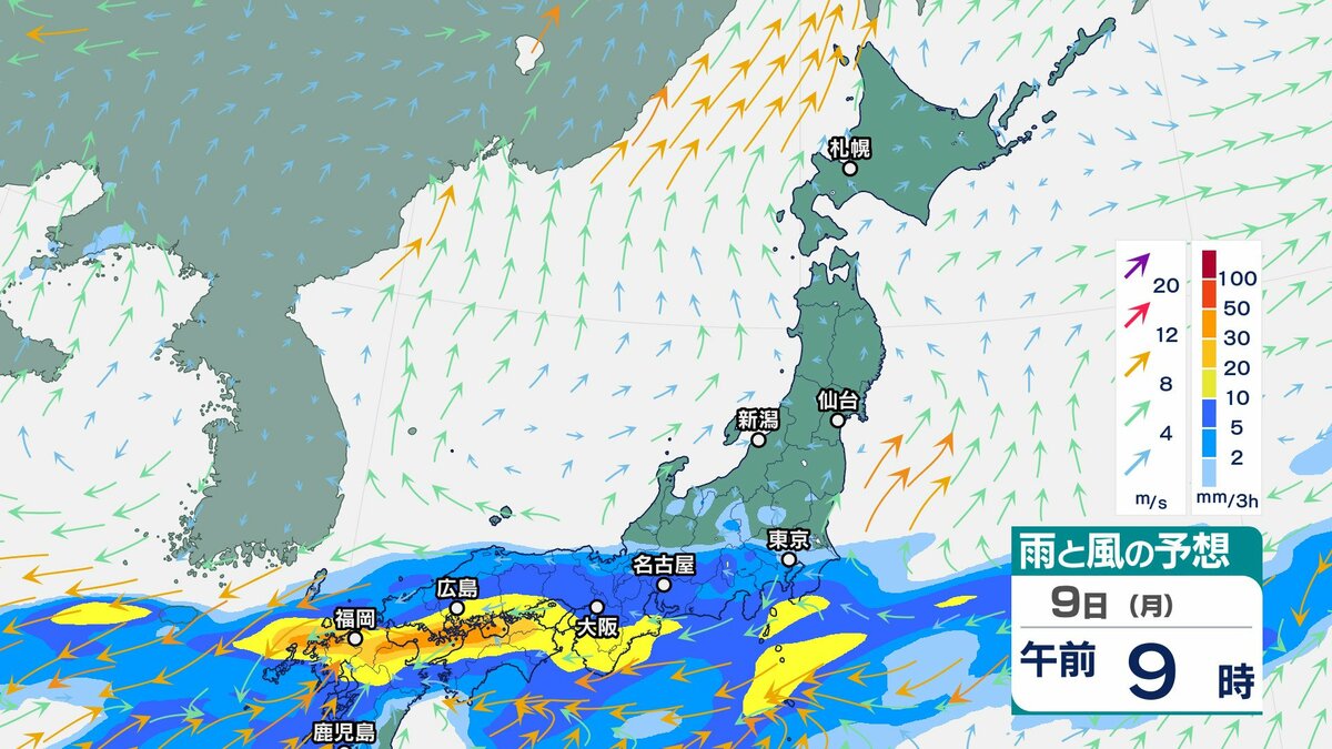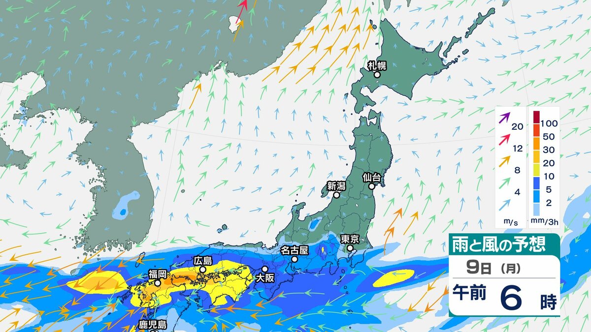 特に西日本では8日、前線に向かって暖かく湿った空気が流れ込むため、大気の状態が非常に不安定になると予想されています。雷を伴う激しい雨が降り、大雨となる所があるということです。