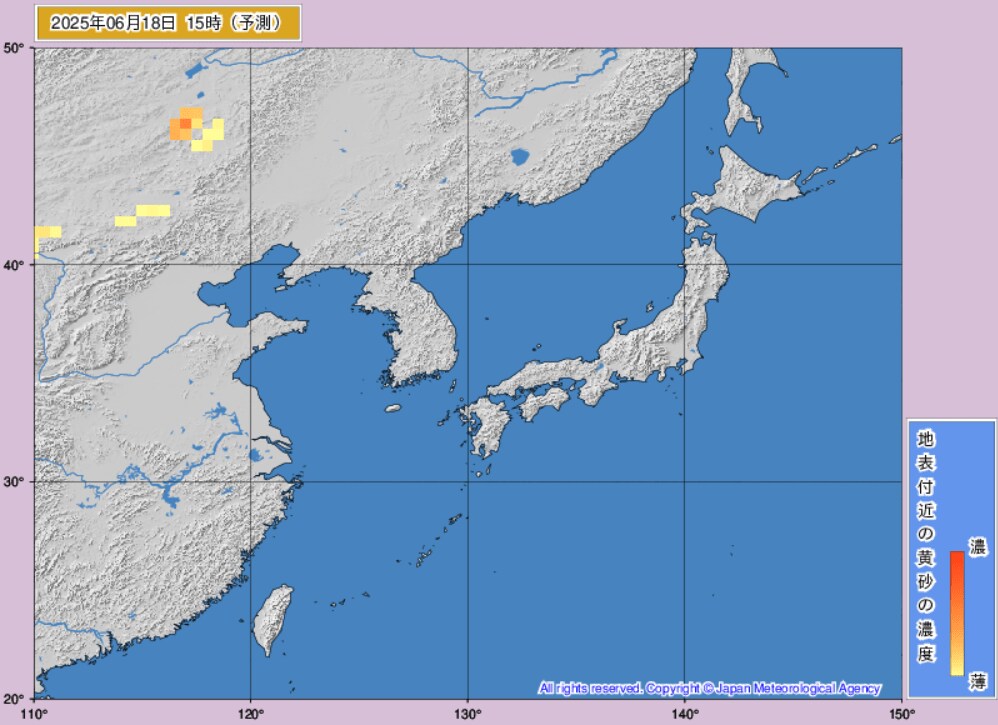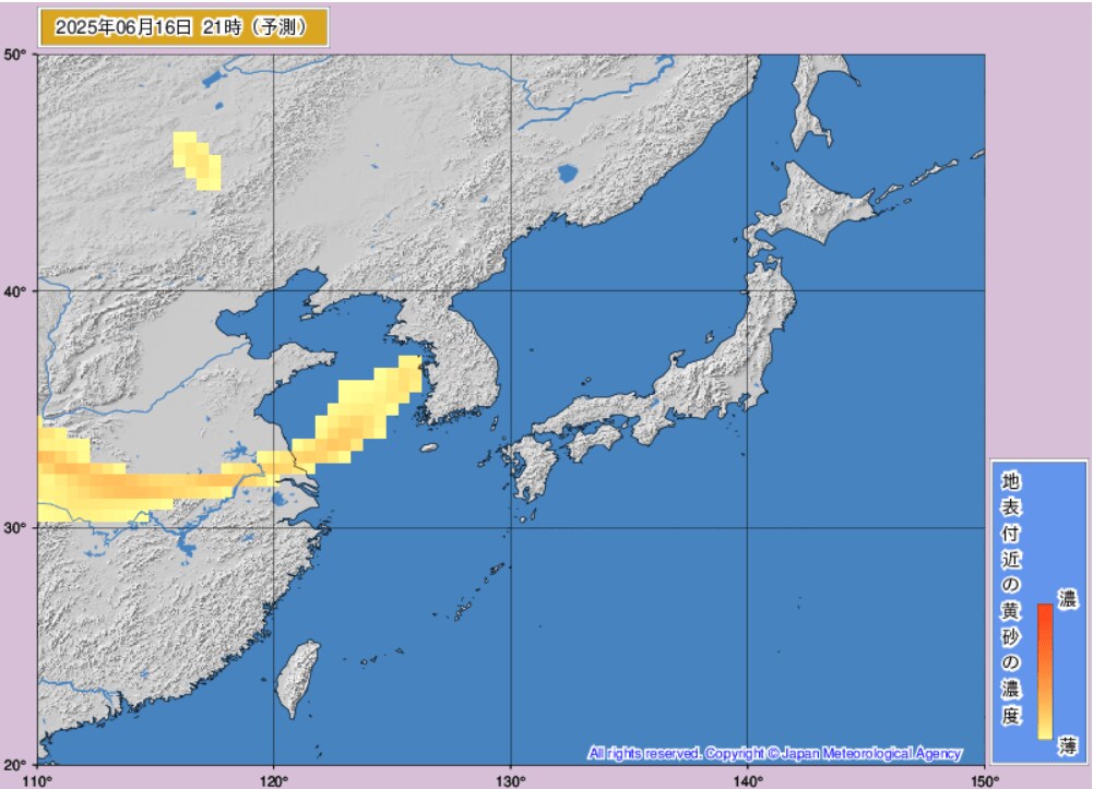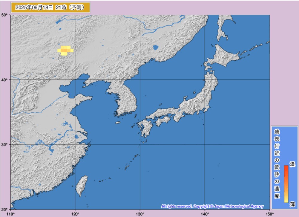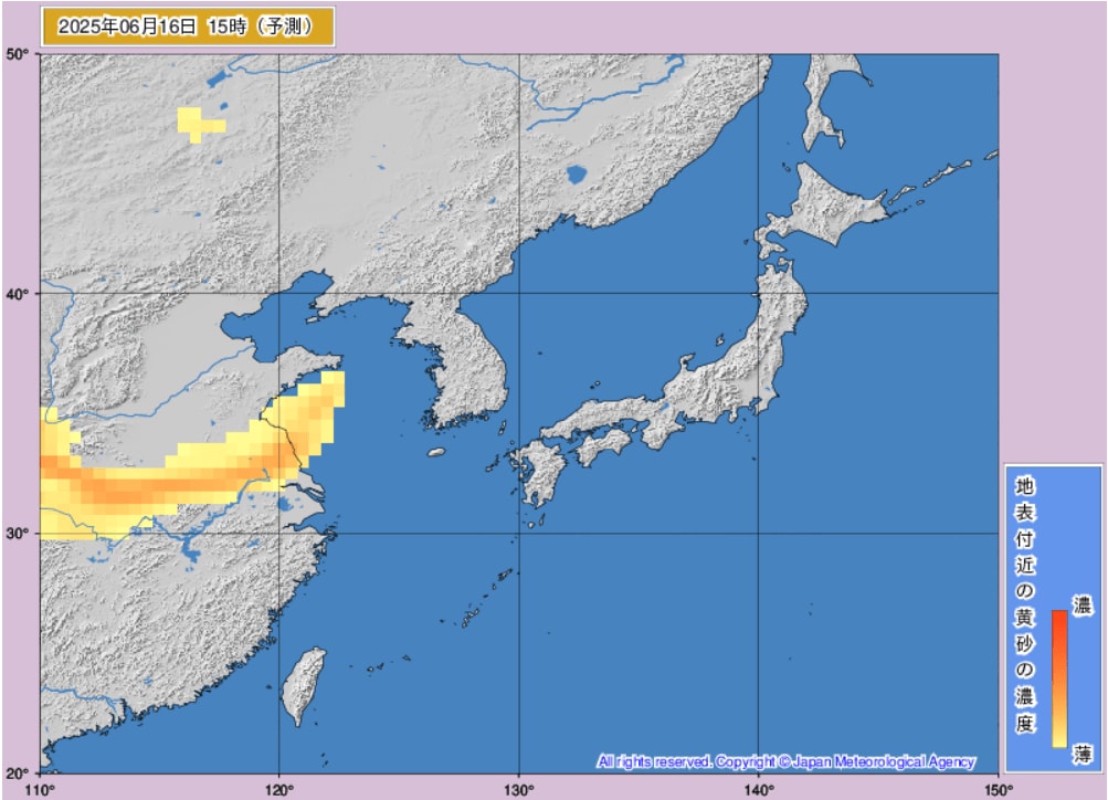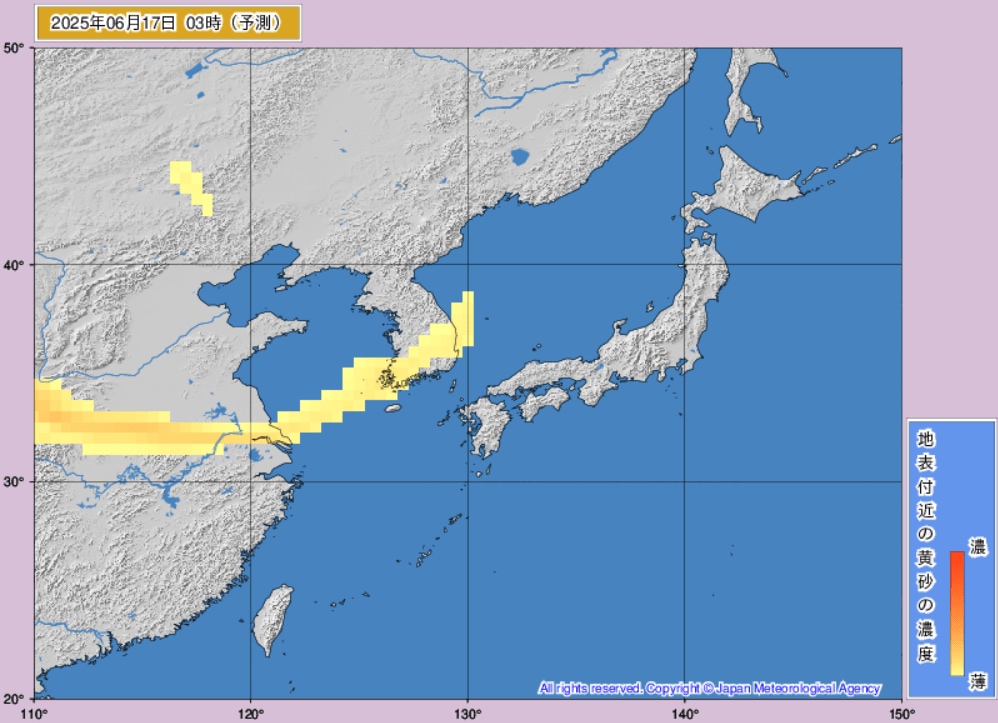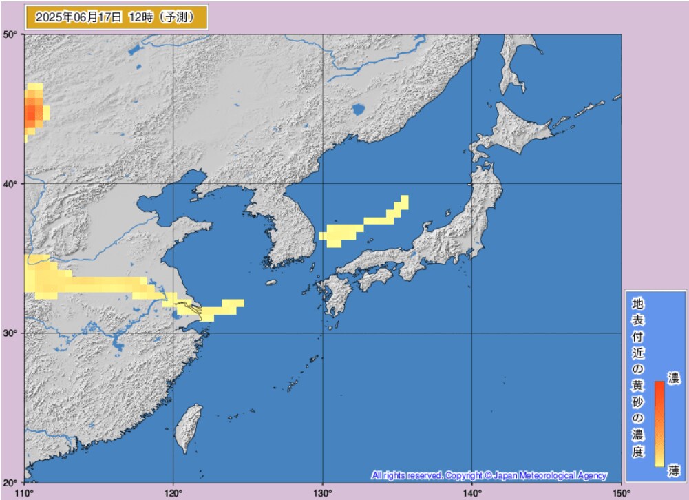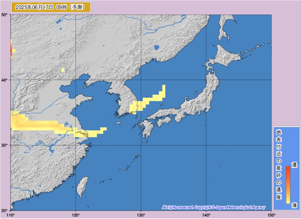 17日から18日にかけて、日本(東海地方、東北地方など)に黄砂が飛来するものとみられます。