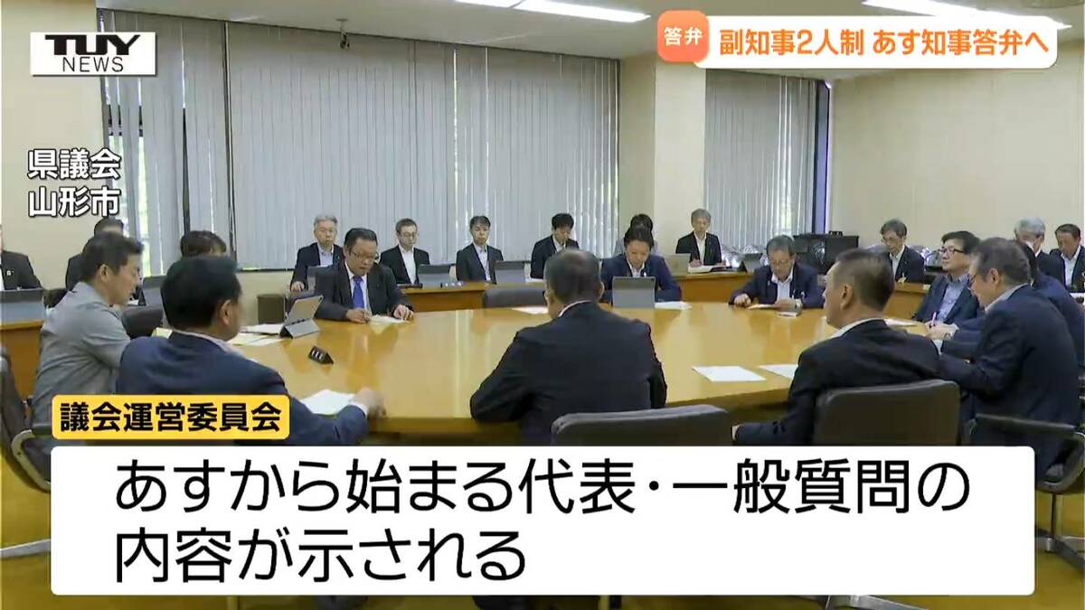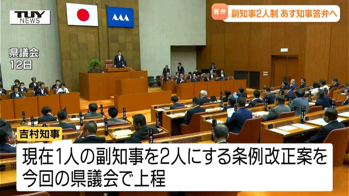 それによりますと、あすの代表質問では、自民党と県政クラブそれぞれから「副知事2人制の導入」について質問が出され、吉村知事が答弁するということです。
