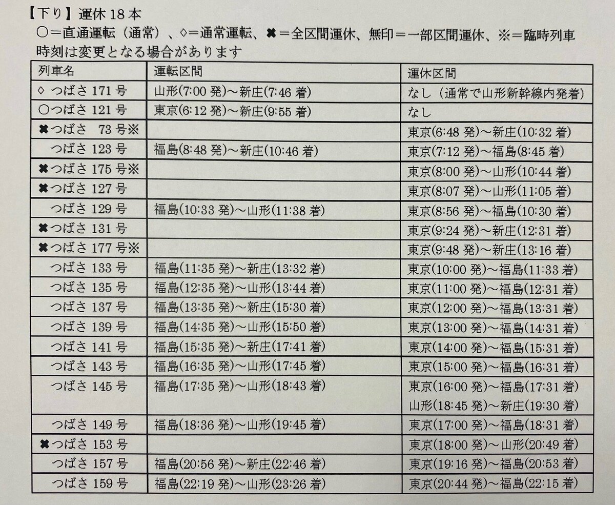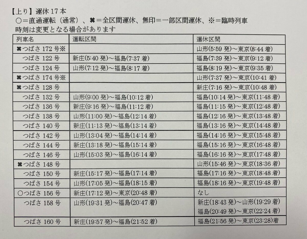 【速報】山形新幹線 21日(土)運行情報発表 JR東日本