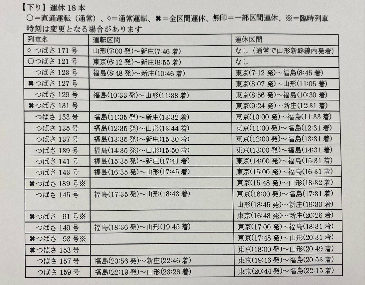 【速報】山形新幹線 22日(日)運行情報発表 JR東日本