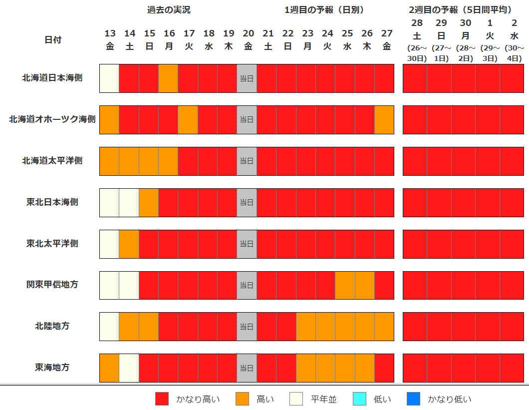 2週間気温予報 北・東・西日本の向こう2週間の気温はかなり高い日が多い予報 健康管理に注意 今後の全国・東北6県の天気は 気象庁