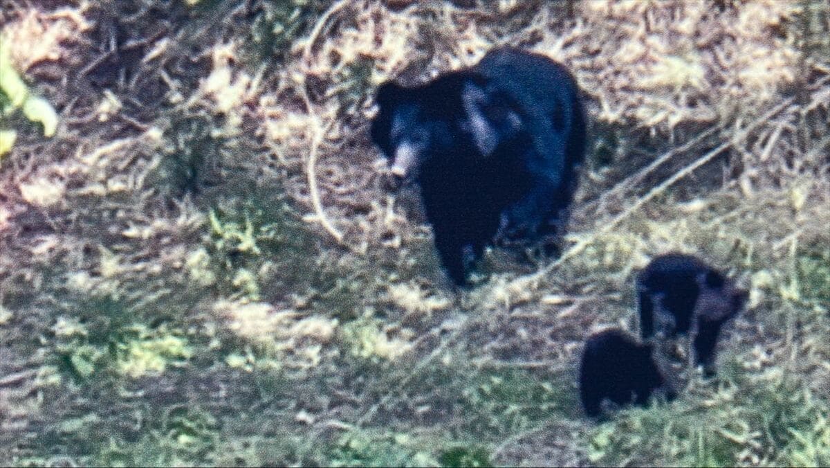 クマはバイクが近づくと急角度ののり面をのぼり立ち去りました。